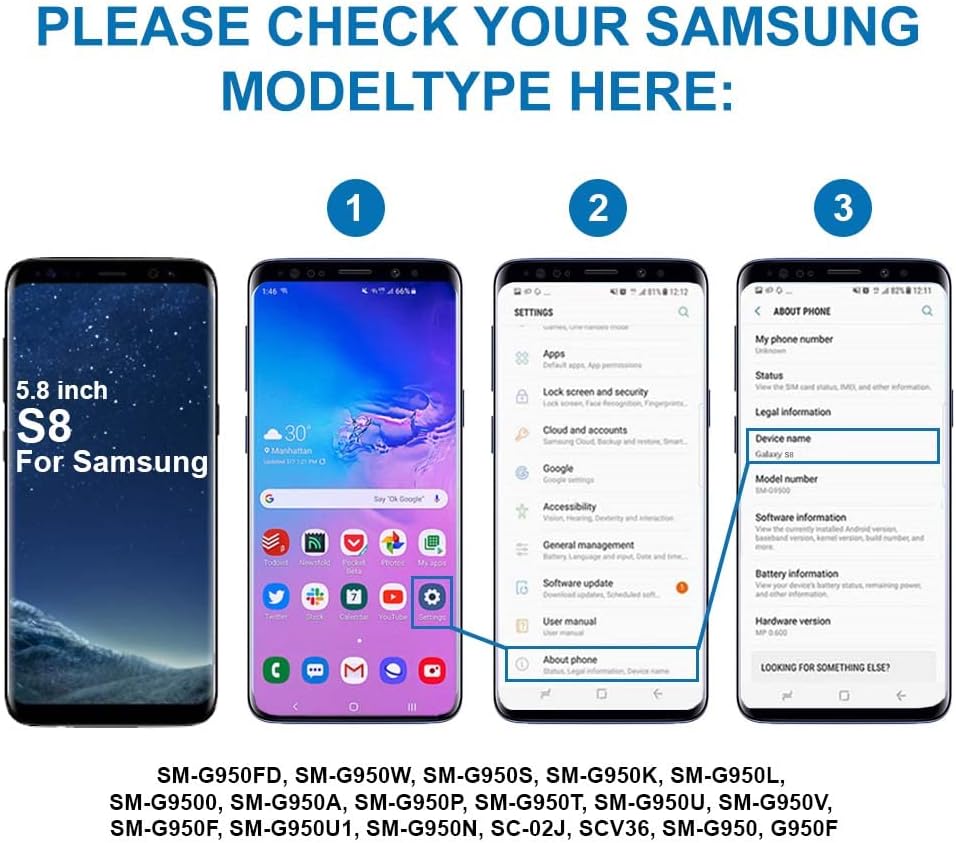 Compatible with Samsung S8 / S8 Plus SM-G991B, SM-G991B/DS, SM-G991U, SM-G991U1, SM-G991W, SM-G991N, SM-G9910 2021 Important: Please check the Model Number of your device before purchasing this Item. You can find the Model type of your device on your device and / or in the settings.