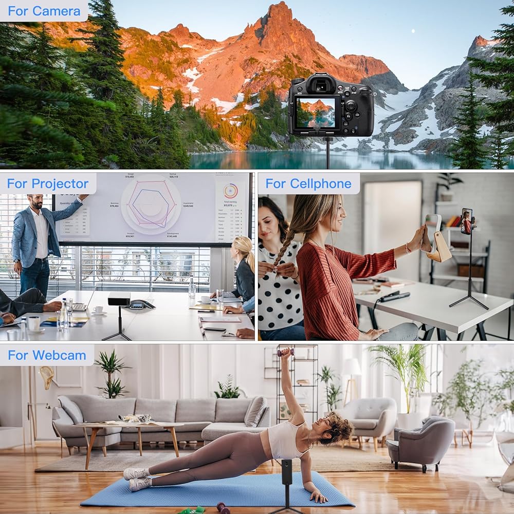 【Widely Compatibility】 Adjustable stand tripod is suitable for photographing events and video recordings such as selfies, family portrait photos, parties, traveling, hiking, sports, YouTube, Vlogs, video conferencing, online meetings, live streaming, recording games, yoga videos.