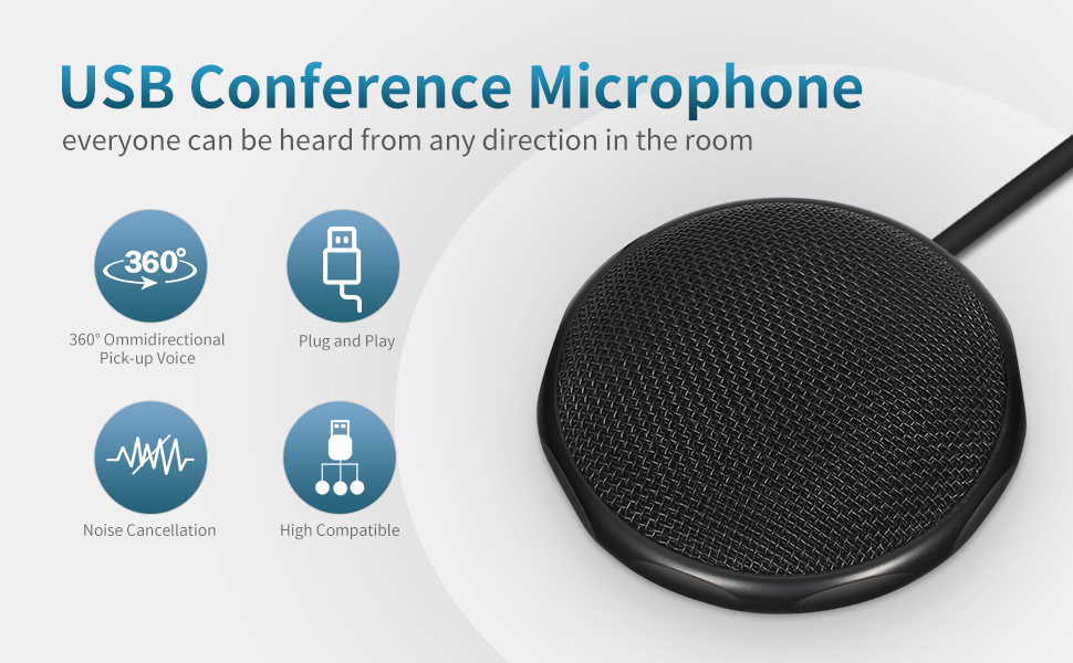 ♫ Compact and Portable Design: Compact portable design, it is about the size of a small hand's palm,so it stays perfectly on the conference room table without taking too much space.Just put the conference microphone into your pocket or briefcase.