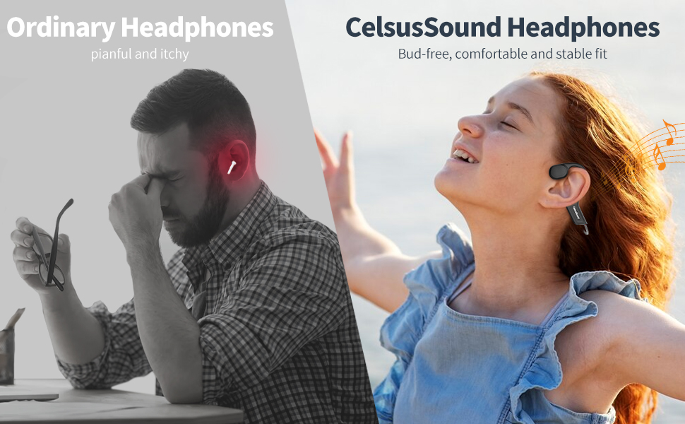 BONE CONVECTION TECHNOLOGY: Feel the rhythm of the music with our state-of-the-art bone conduction technology. CelsusSound bone conduction headphones deliver quality audio through the jawbone, allowing you to hear music without having to put anything in your ears; the open-ear design and bud-free design ensures that you won't miss out on the sounds around you while listening to music, and it's safer and more hygienic than traditional bluetooth headphones.