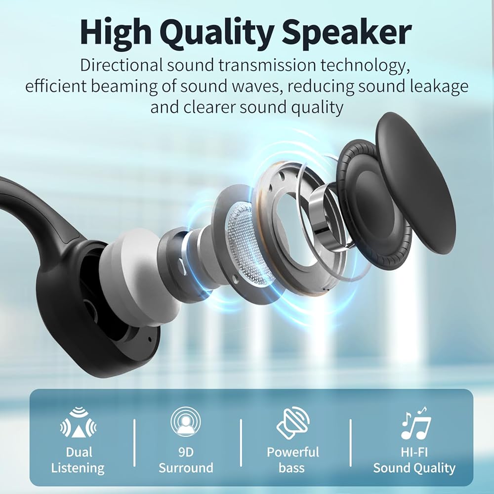 HCMOBI Bone Conduction Headphones, Open-Ear Bluetooth 5.3 Headphones with Mic, IPX7 Waterproof Sports Earbuds Wireless Earphones for Running Workout Cycling, 1.5 Fast Charging and 10H Working Time