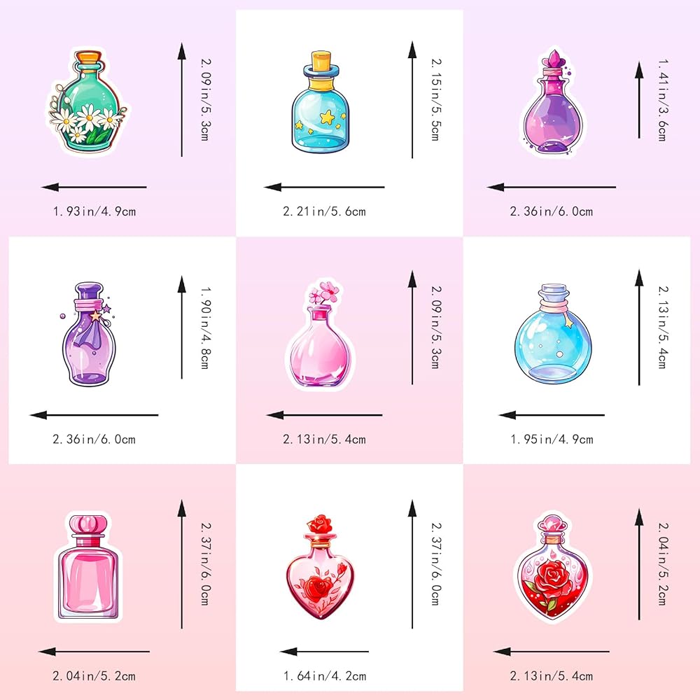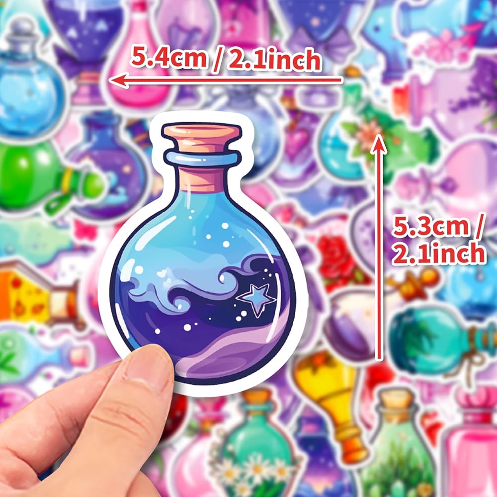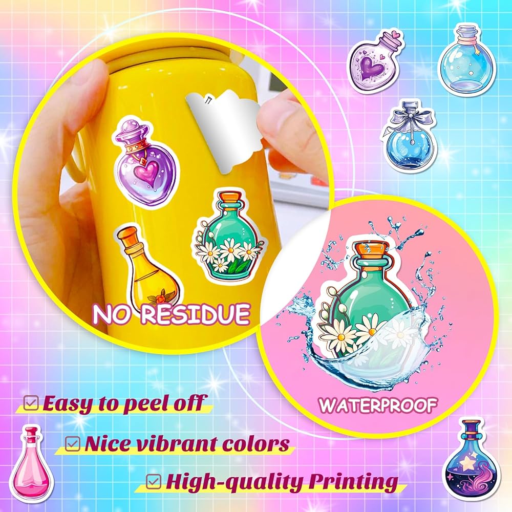 مجموعة ملصقات انيمي جمالية مقاومة للماء من 50 قطعة لزجاجة المياه واللابتوب وحقيبة السفر والدراجة والنوت بوك ولوح التزلج ودفتر القصاصات وزجاجات الجرعات السحرية كاواي