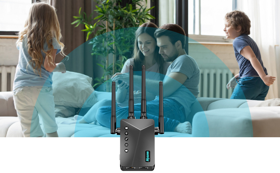 UP TO 9882 SQ.FT, NO BLIND SPOT! - Although most WiFi extender signal booster get stuck behind walls and cement floors, Hyzom WiFi repeater penetrates these barriers and extending your wireless internet to every corner of your house and beyond to the garage. Freely play games, stream 4K video, schooling or video conferencing at home and outdoor.