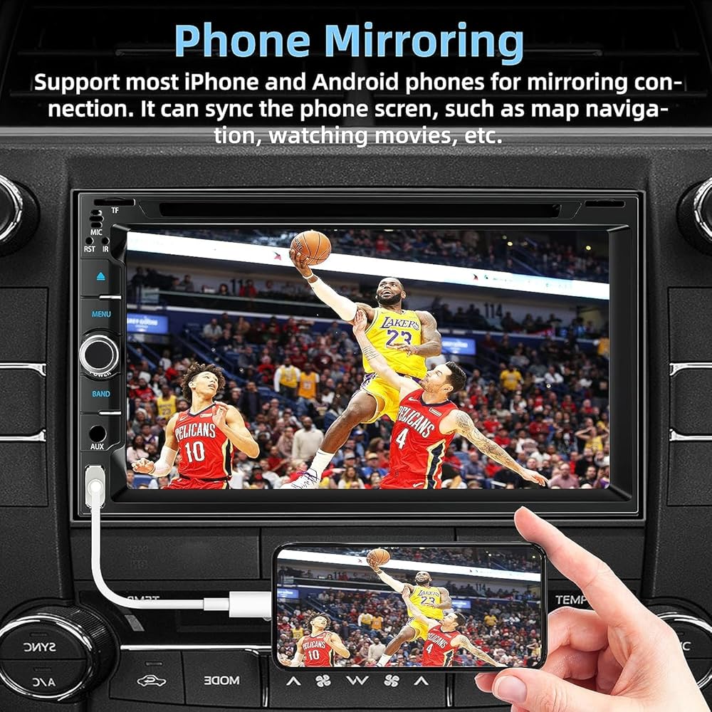 Mirror Link--The 7 inch double din car stereo support IOS and Android phones for mirror link function, connect your smartphone to double din car stereo apple carplay via a original USB cable,easily connect and sync you phone any content to the car player displayed on a large screen.