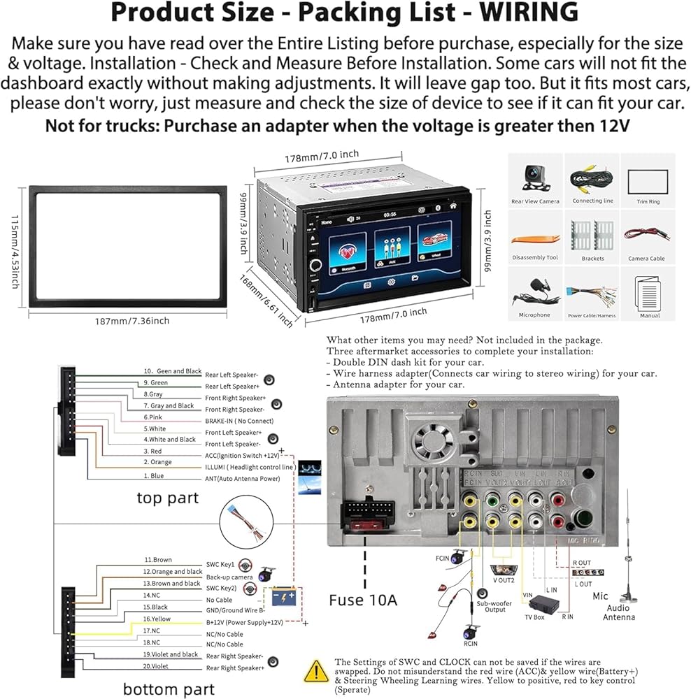 Installation & Best Service--Please make sure if your dash board opening size fits our car audio receiver. If you find that our stereo size does not meet your dash size, please purchase a suitable dash kit. At the same time, we also provide 7*24 hours of after-sales technical support to help you solve installation and operation problems.