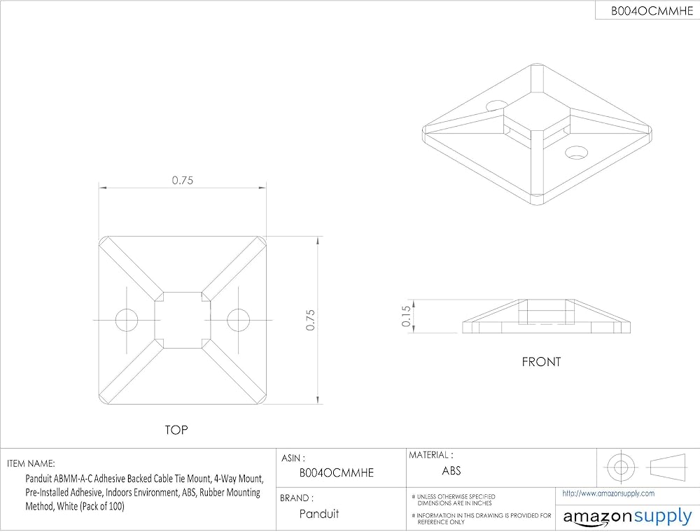 Panduit ABMM-A-D Cable Tie Mount, Adhesive Backed, 4-Way, ABS, White (500-Pack)
