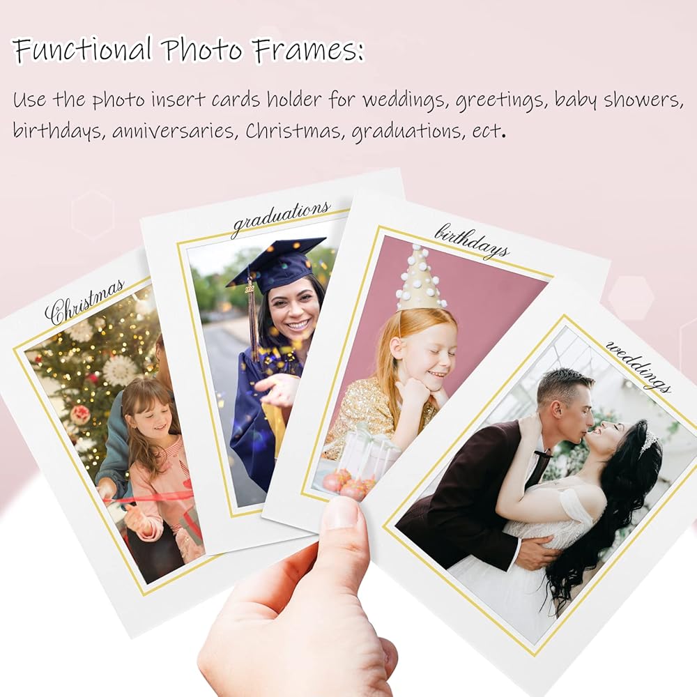 Be Widely Use: use the photo insert cards holder for weddings, greetings, baby showers, birthdays, anniversaries, Christmas, graduations, Valentine's, Father's Day, Mother's Day, Halloweens Thanksgiving and holidays. Simple and clean to help you organize all your photos