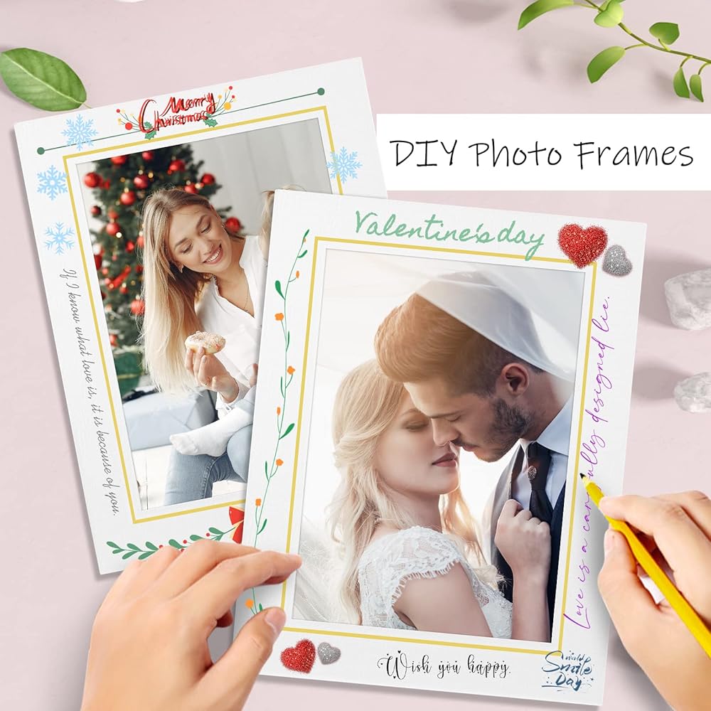 Dimensions: Each DIY picture frame fits 4x6 inch photos; Photo Opening Size: 4.5" x 6.5". Overall Dimensions: 6.5 x 8.5"