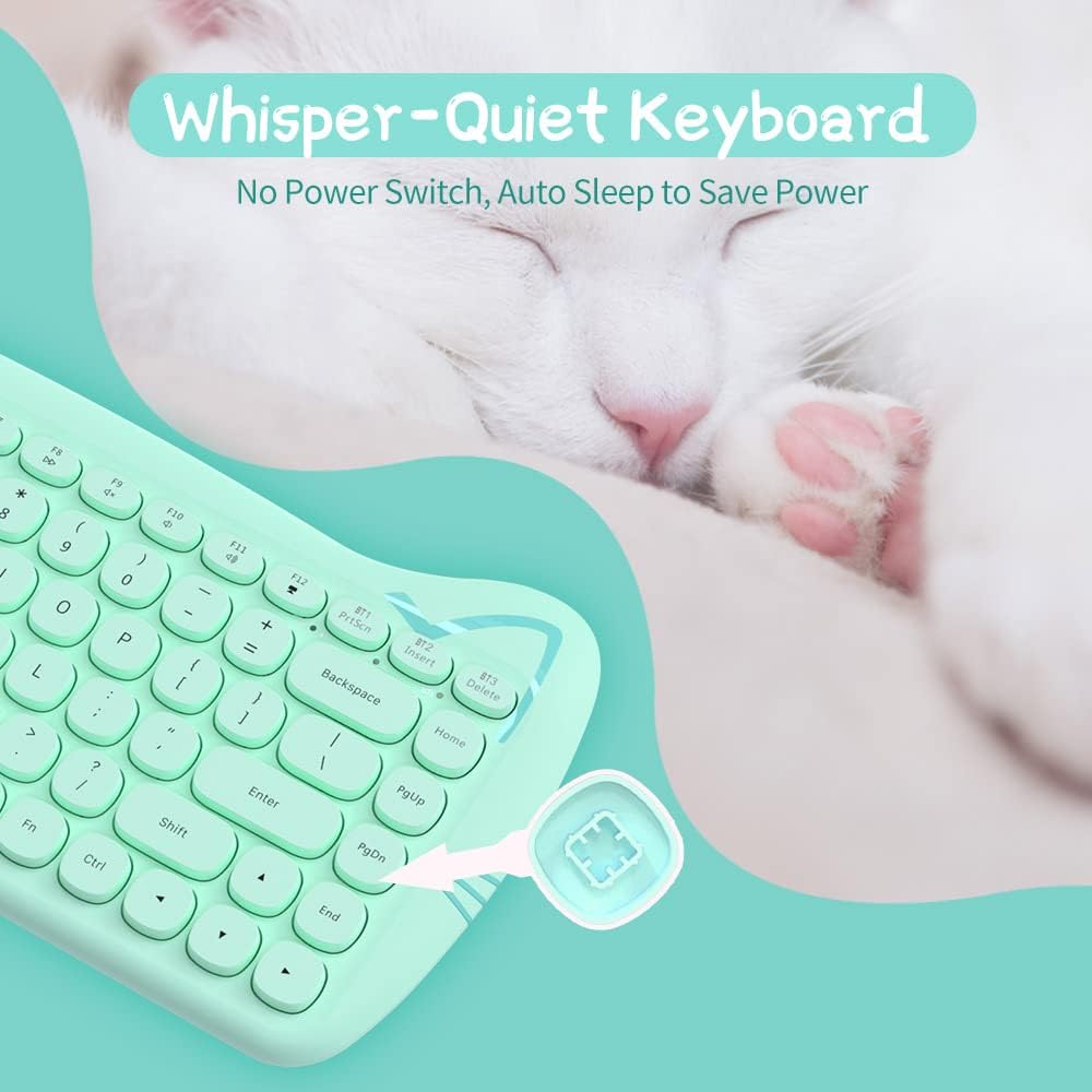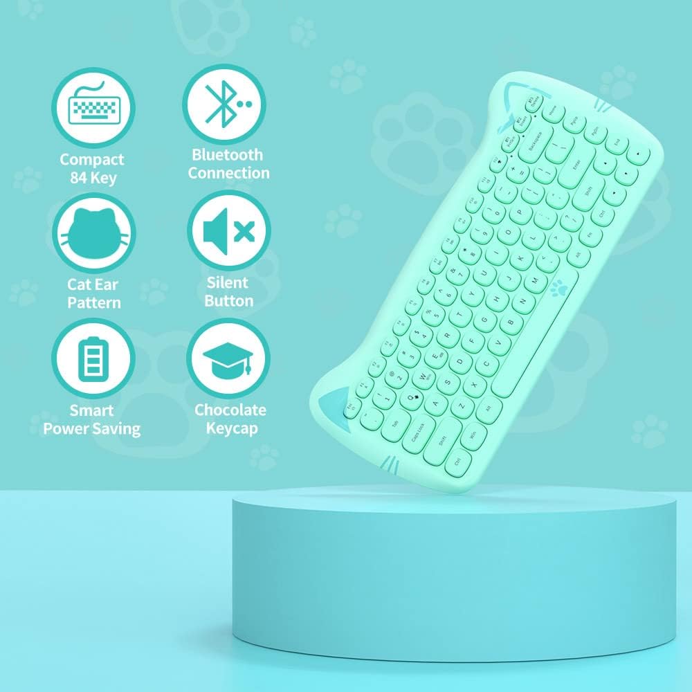 【Compact Silent Keyboard】84 key aesthetic keyboard uses button noise reduction technology to greatly reduce the key click sound. It can provide quiet and comfortable typing experience; compact layout and weight of only 450g/16Oz, easy to carry on business trips, travel or school; the operation is very simple and you can enter the Bluetooth mode without any keys.