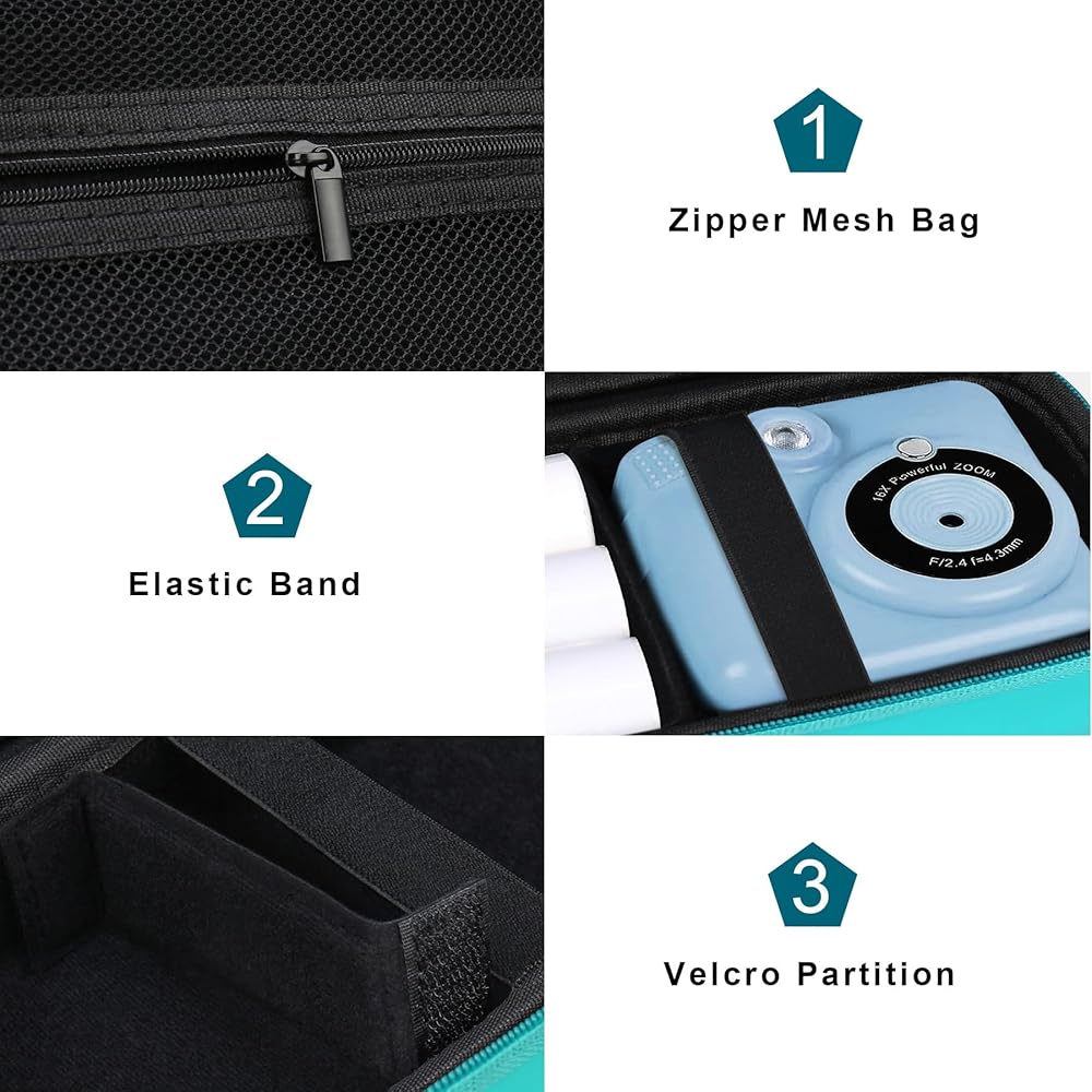 【Perfect Fit】 CASE ONLY! (Kids digital camera and accessories are not included). Instant camera storage bag compatible with MINIBEAR/ ESOXOFFORE/ YTETCN/ WEEFUN/ Anchioo/ GKTZ and more instant print camera for kids digital camera for girls toddler camera. Kids video camera container fits print paper, USB cable, color pen, SD cards and other accessories.