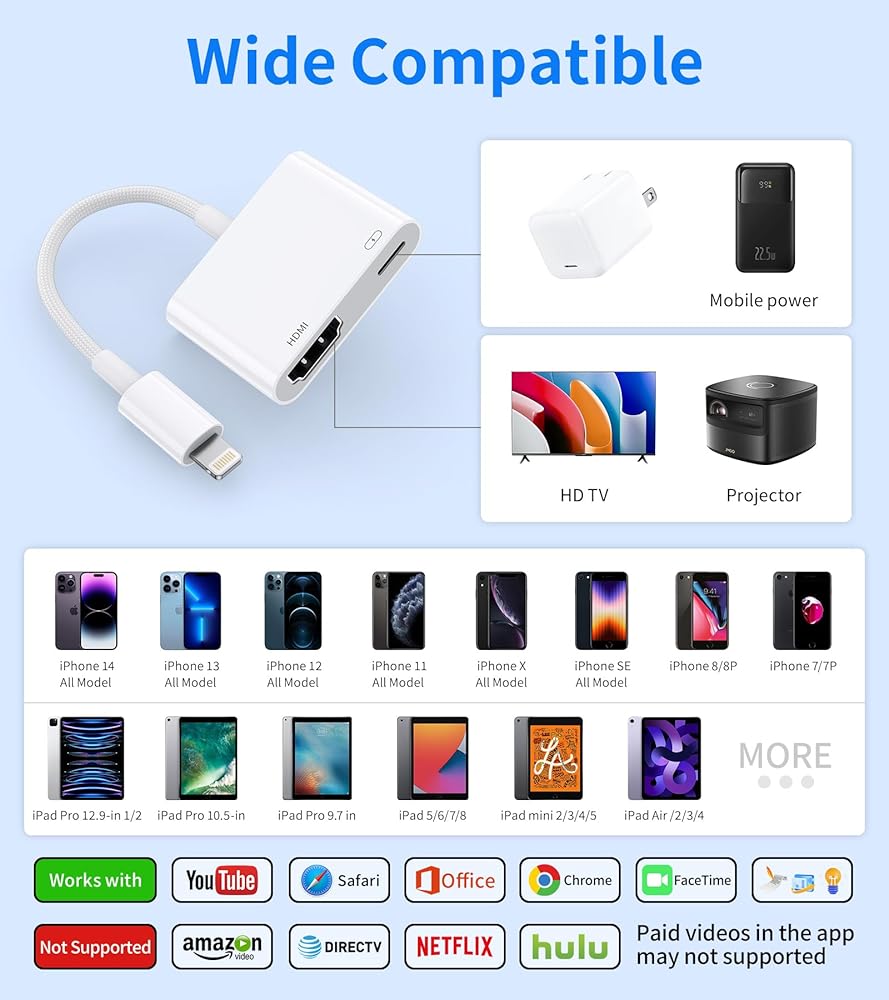 Lightning to HDMI Digital AV Adapter,[Apple MFi Certified] 1080P HDMI Sync Screen Digital Audio AV Converter with Charging Port for iPhone, iPad, iPod on HDTV/Projector/Monitor, Support All iOS