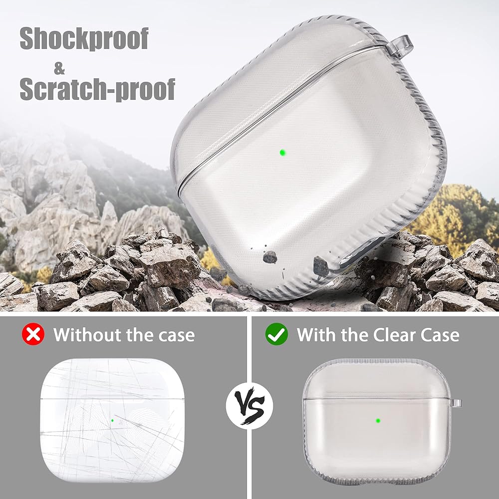 [Crystal Clear & Lightweight] The clear case is made of Eco-friendly anti-yellow high quality TPU, transparent appearance shows off the original beauty of your elegant Airpod 3.