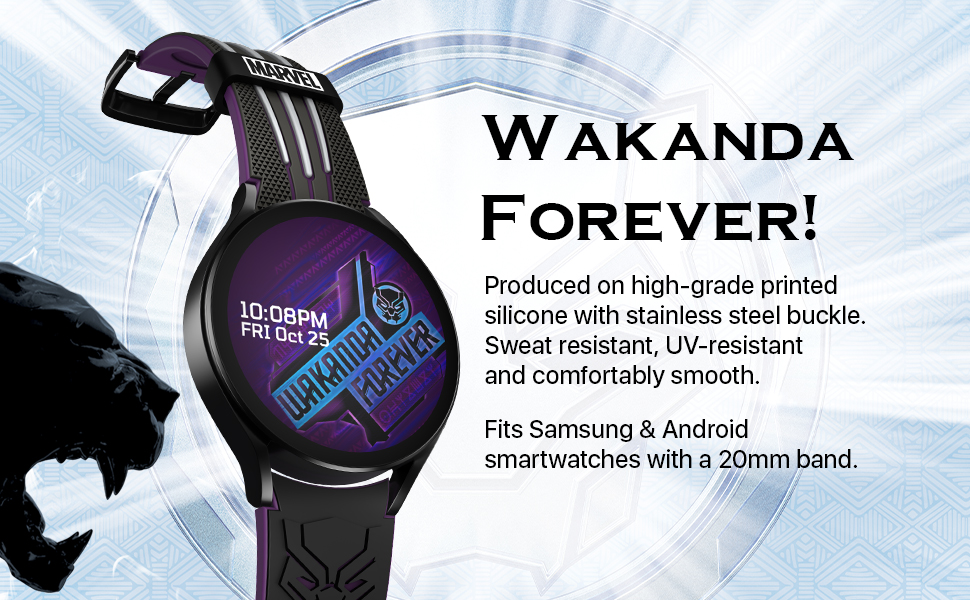 High quality materials: Made with sweat and UV-resistant silicone, this smartwatch band is tough while feeling smooth, well able to handle all your adventures in Wakanda and beyond