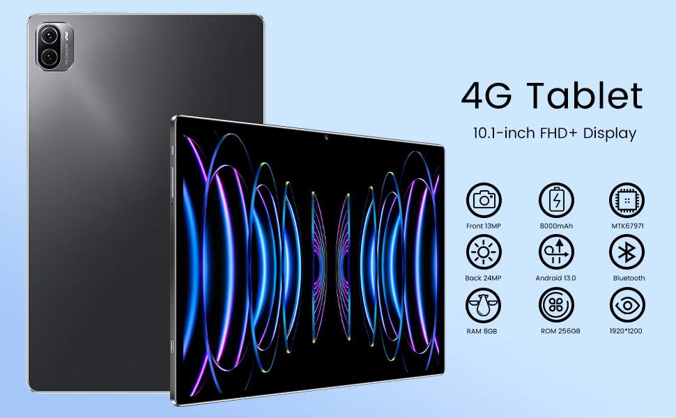 【Great View and More Responsive】This 10'' Tablet Pad Adopts a 1920 x 120 IPS Display, Presenting a Bright Display with Vivid Colors for a more True-to-life Viewing experience, Brings you a Crisper and Brighter image. Featuring with 10.0" Capacitive touch, ensure a more Fluently Action for Movie and Game.