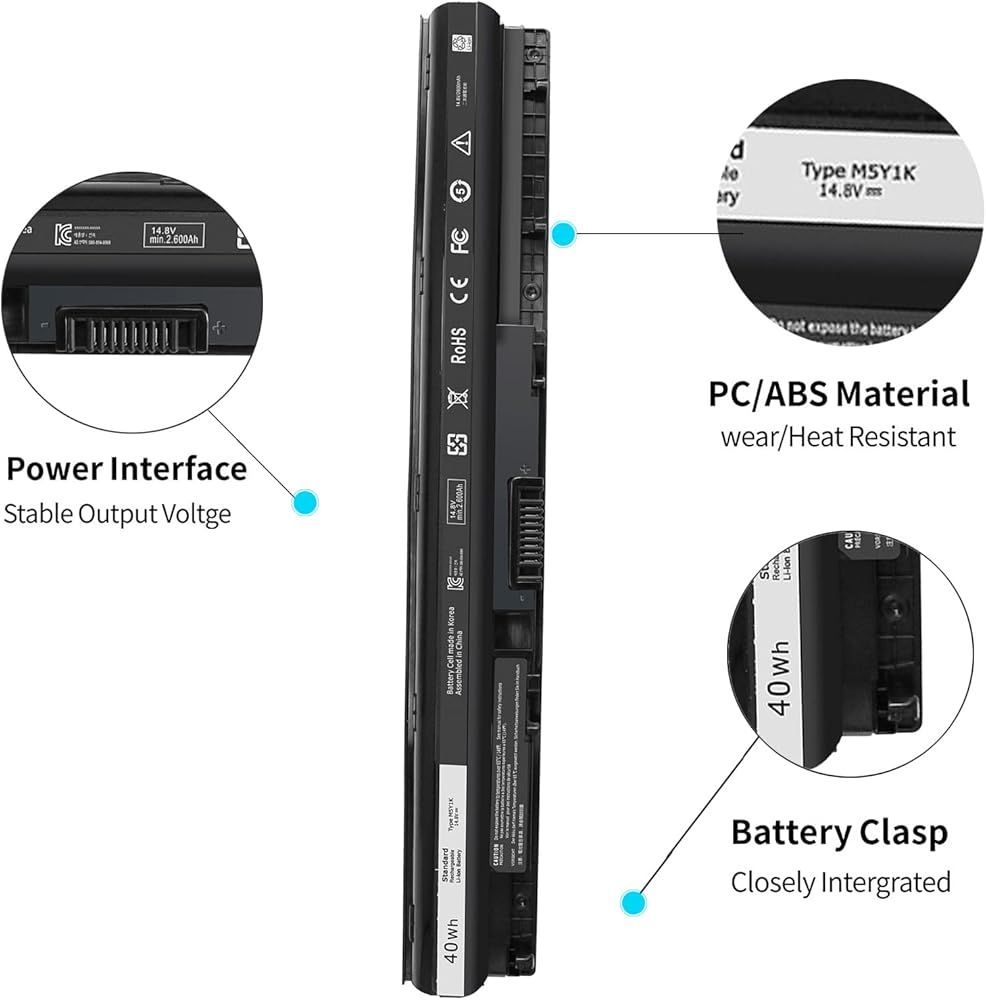 • SPECIFICATION : Model: Type M5Y1K; Battery Type: Lithium-ion; Voltage: 14.8V; Capacity: 40Wh; Cells: 4-cell; Condition: New; Packages includes: 1PC laptop battery.