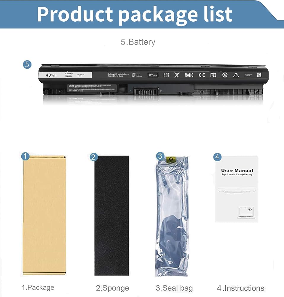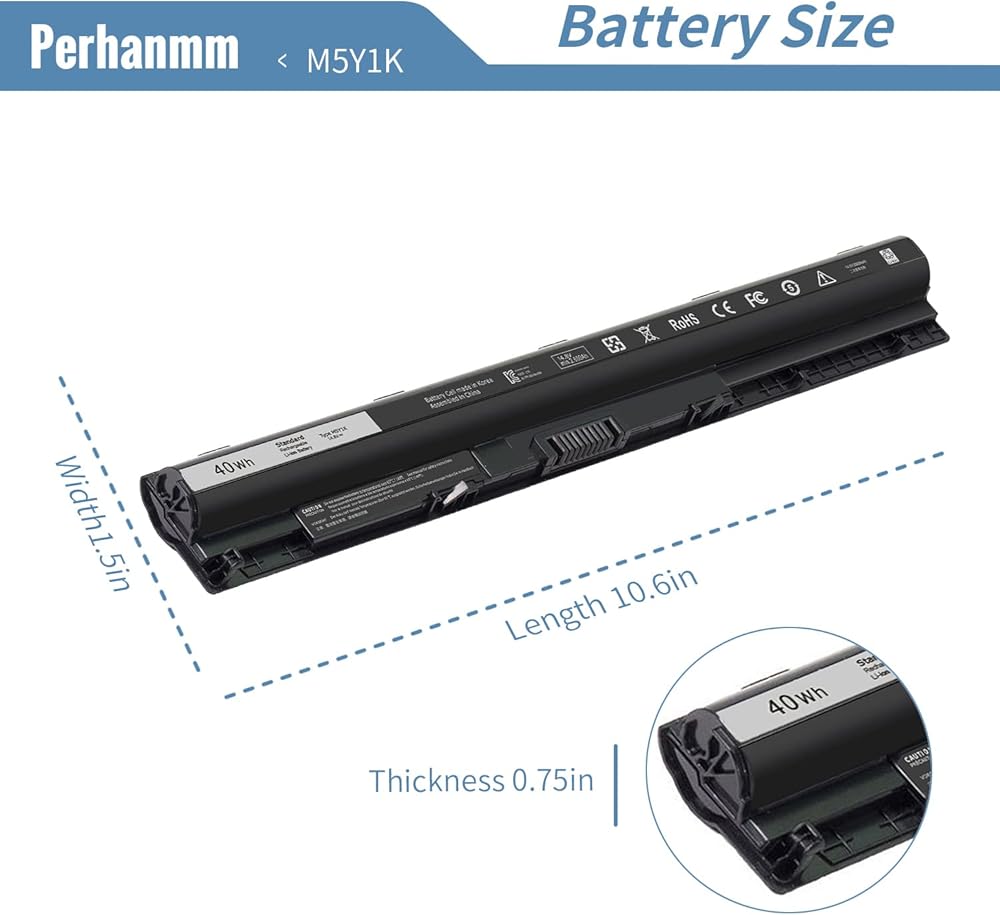 40Wh M5Y1K 14.8V Battery for Dell Inspiron 14 15 17 5000 3000 Series 5559 5558 5555 5566 5551 5552 5758 3567 3565 3558 3559 3551 3552 5755 5756 5758 5759 3451 3452 3458 5458 5759 VN3N0 YU12005-13001D