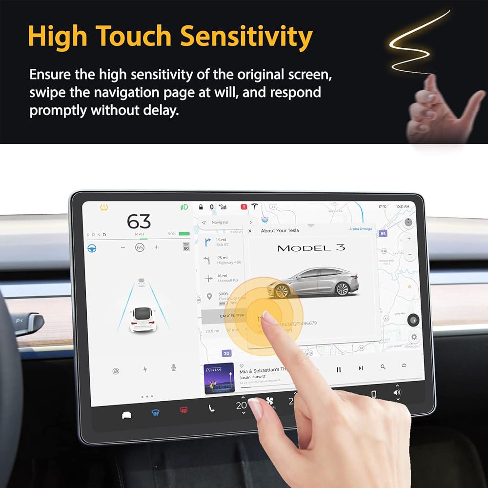 [COMPATIBLE MODEL] Laser cut & precise fit, compatible with Tesla Model 3 and Model Y screen protector15-inch. Please check your car model.