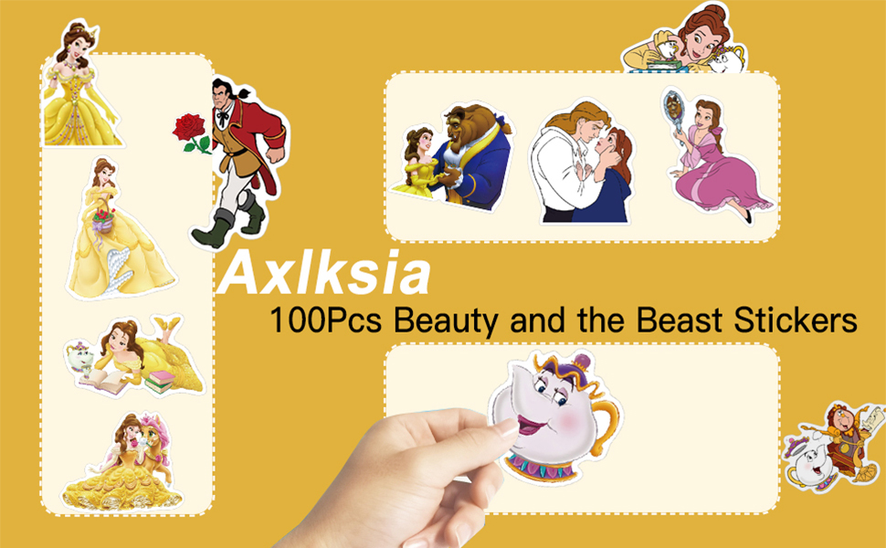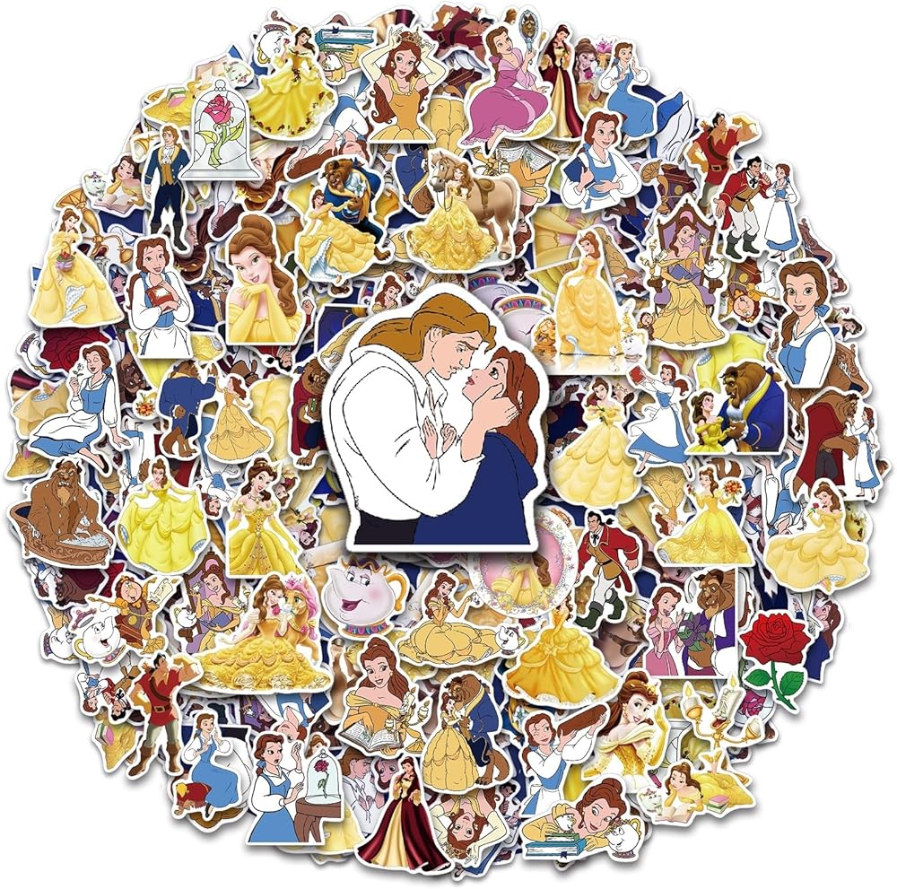 Axlksia 100Pcs Beauty and the Beast Stickers, Cute Stickers for Water Bottles, Laptop, Kindle, Computer, Cars, Reusable Vinyl Stickers and Decals for Teens Gift, Stickers for Kids, Stickers for Adults