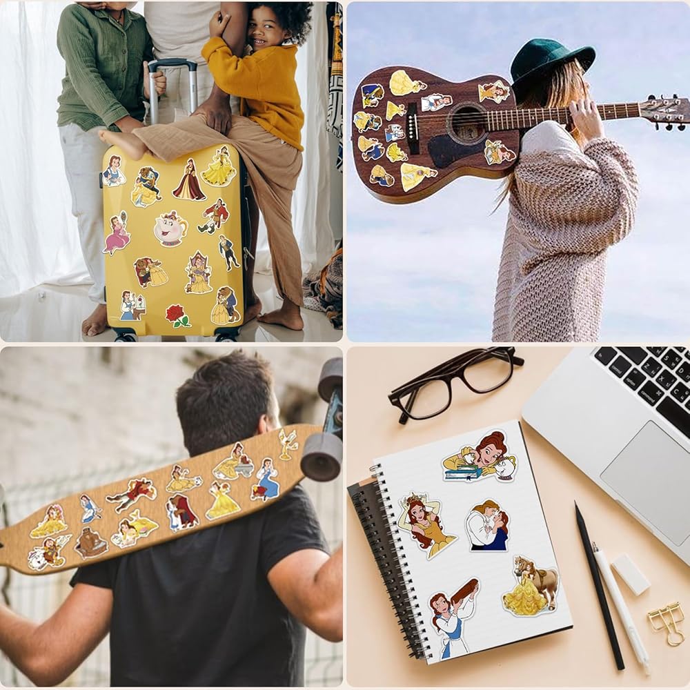 Beauty and the Beast Stickers - Package includes 100 pcs vsco Beauty and the Beast stickers. Our cool sticker designs come in various styles. You would receive the patterns you see in the pictures. Cute stickers can bring a lot of fun to your life. You just need to use your imagination and create works with our waterproof stickers