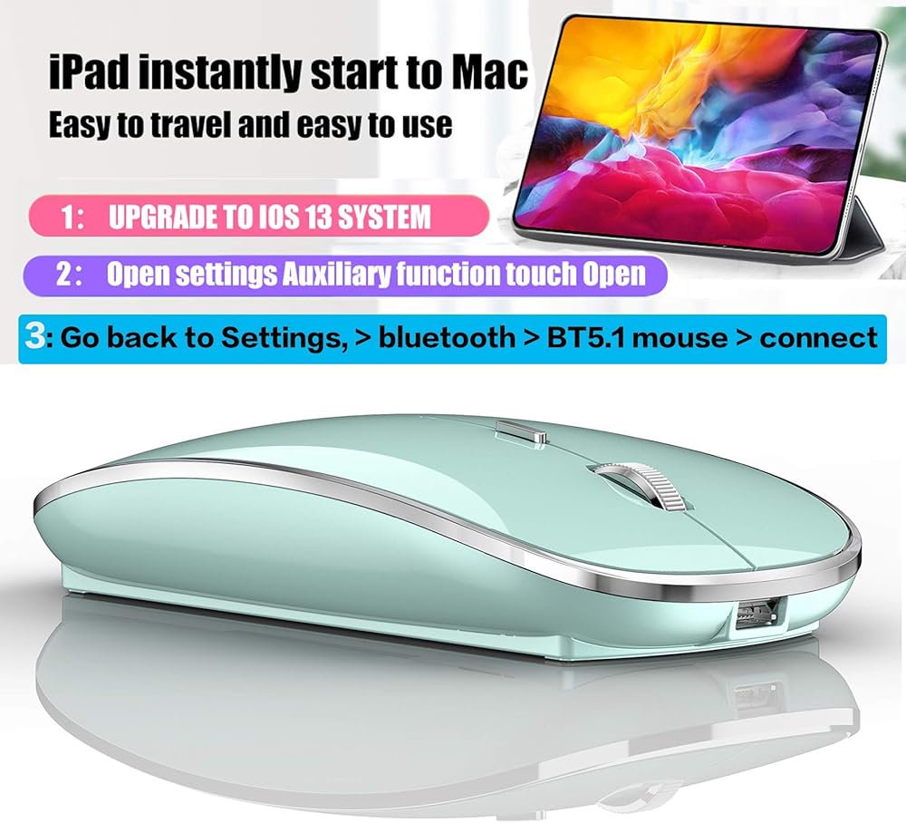【 iPadOS , iphone, Android phones, Android tablets】 : Open settings>Bluetooth ON>> (open mouse bluetooth blue light onopen mouse bluetooth blue light on and hold the mouse Bluetooth connection blue button for 2 seconds, then release it )> Devices : click connect "BT3.0 Mouse'' or ''BT5.2 Mouse'
