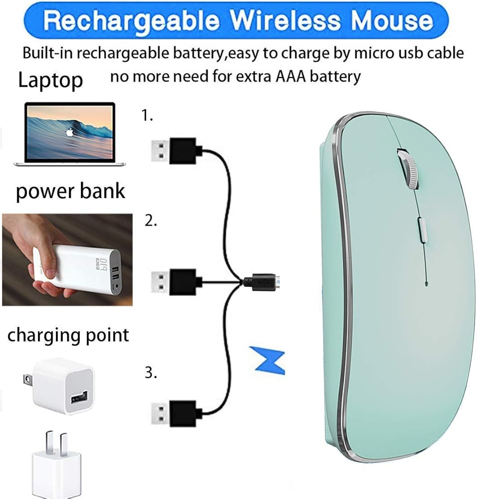 ⚡How to charge the mouse: Use a charger with a voltage of less than 5V or 5V to charge the mouse for about 3 hours, or charge the mouse through a computer/laptop USB port, move the power supply, (note that high-power chargers cannot be used to charge the mouse)