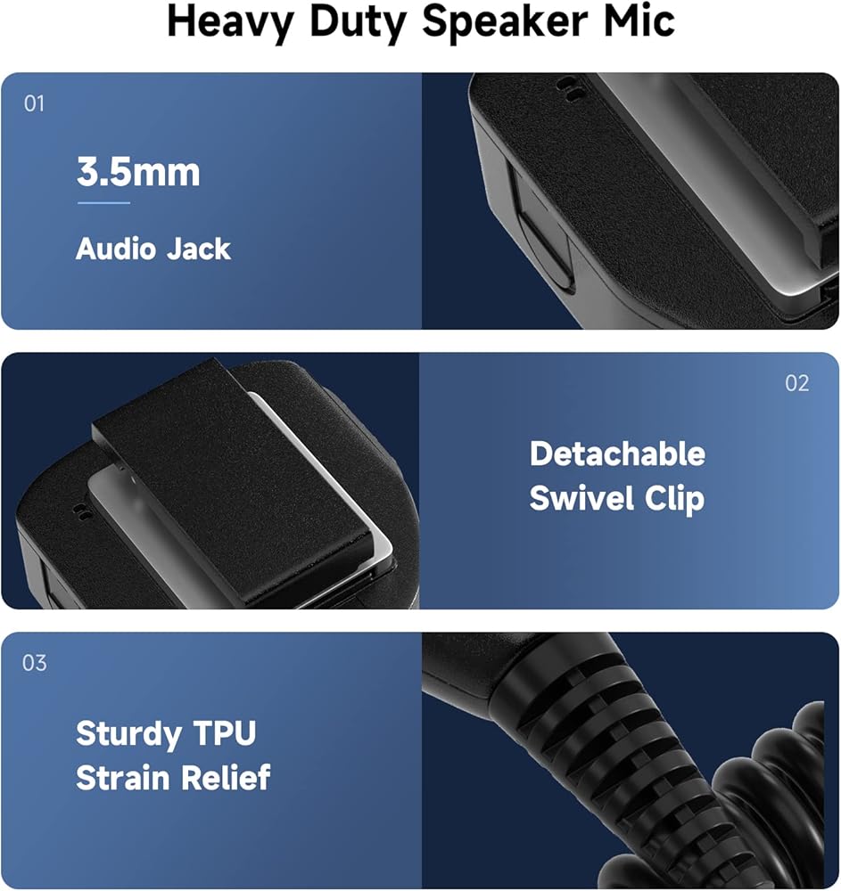 Easy to use: The handheld speaker mic features a simple and intuitive design that makes it easy to operate, even while wearing gloves or in low light conditions. The push-to-talk button is located on the side of the mic for quick and easy access, while the sturdy clip ensures secure attachment to your clothing or gear.