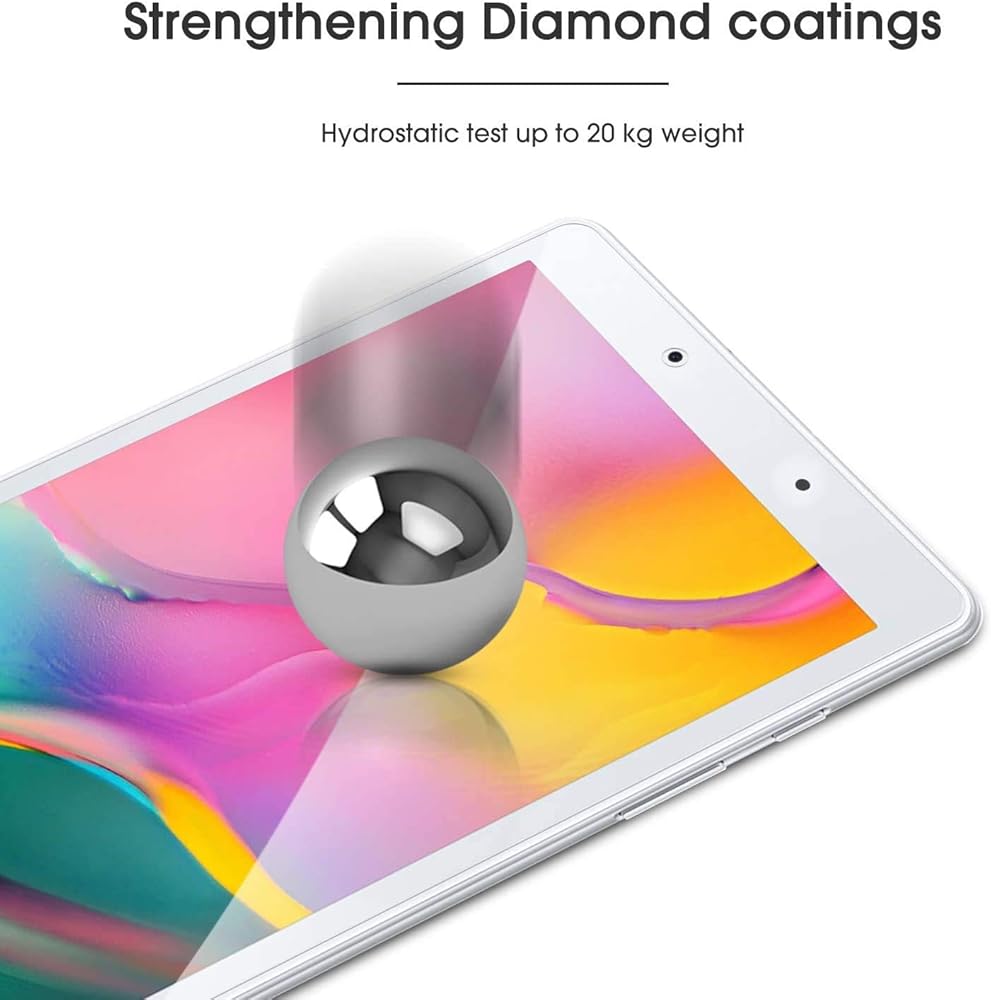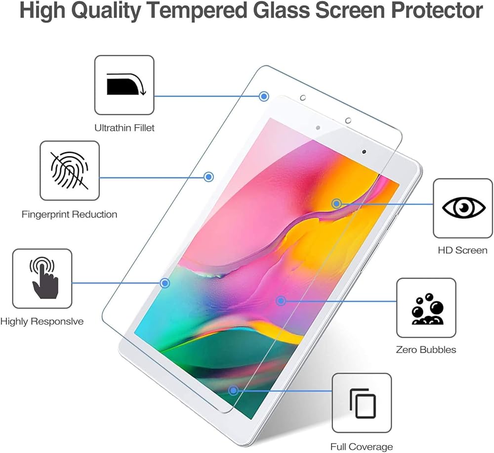 - Due to the round edge of Samsung Galaxy Tab A 8.0 inch(SM-T290/T295) 2019 Version, the screen protector will NOT cover the full screen, but only the flat area.