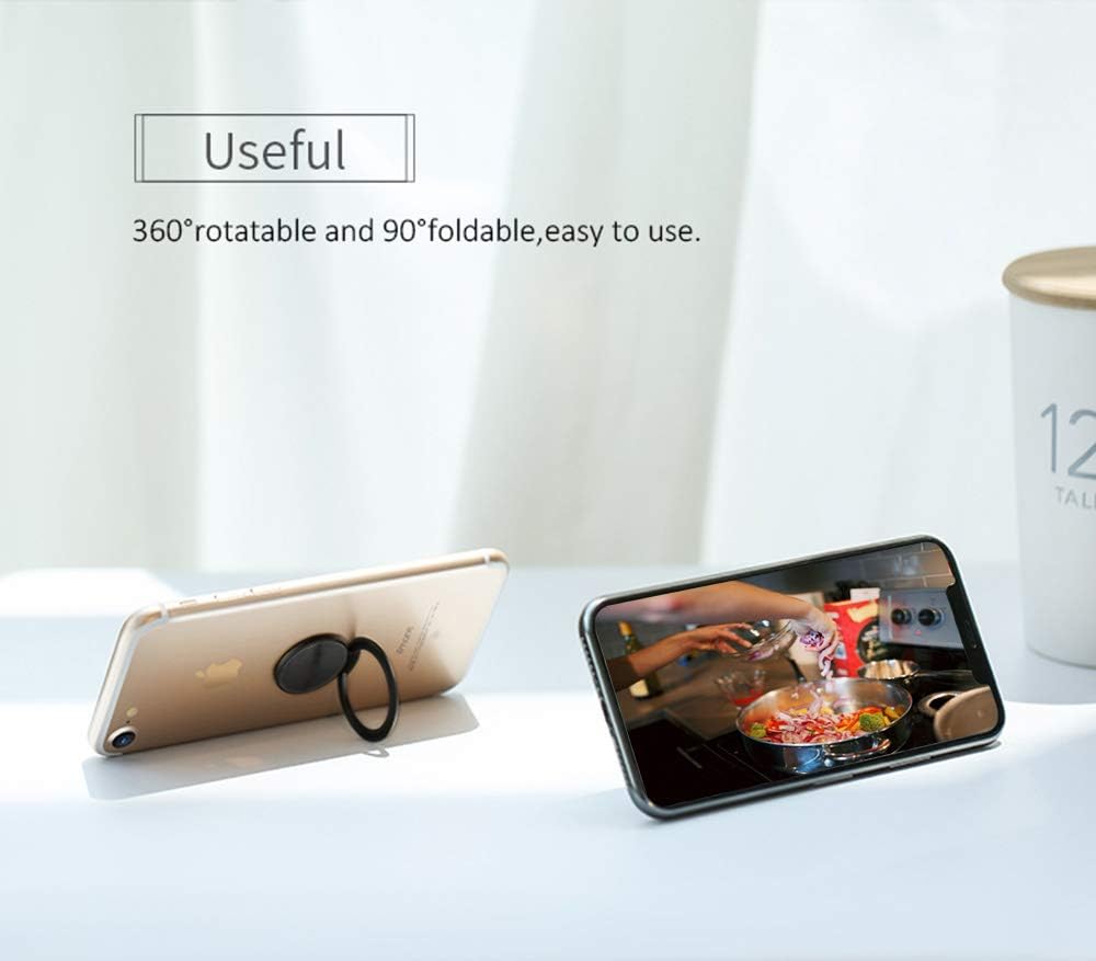 [360° Rotation & 100° Flip Design] - Easy to adjust to provide a comfortable viewing angle for your finger to hold and to keep steady when put on the table. Also a perfect phone finger grip, allowing you to take selfies with ease, carry your phone with one finger, and use when jogging. Makes it much easier to reach every corner of your phone with the ring holder, and never worry about dropping your phone again.
