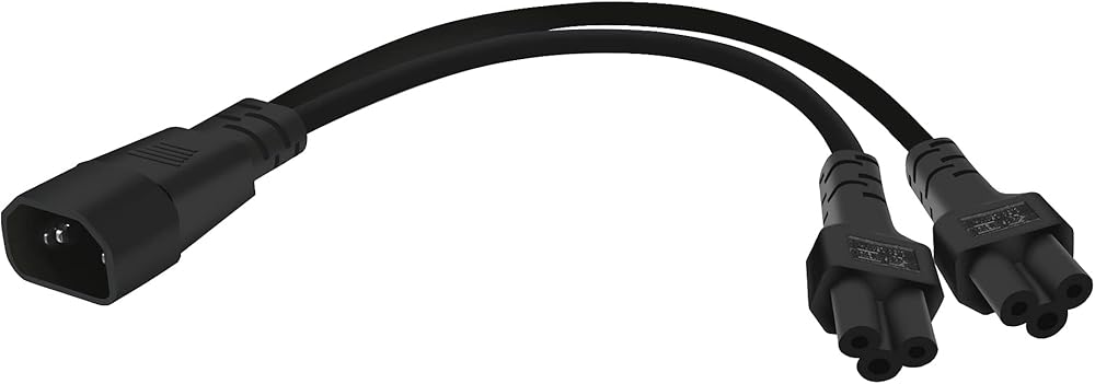 Power Y Type Splitter Adapter Cable Single IEC 320 C14 Male to Dual C5 Female Short Cord for Computer host display 1ft/0.3M