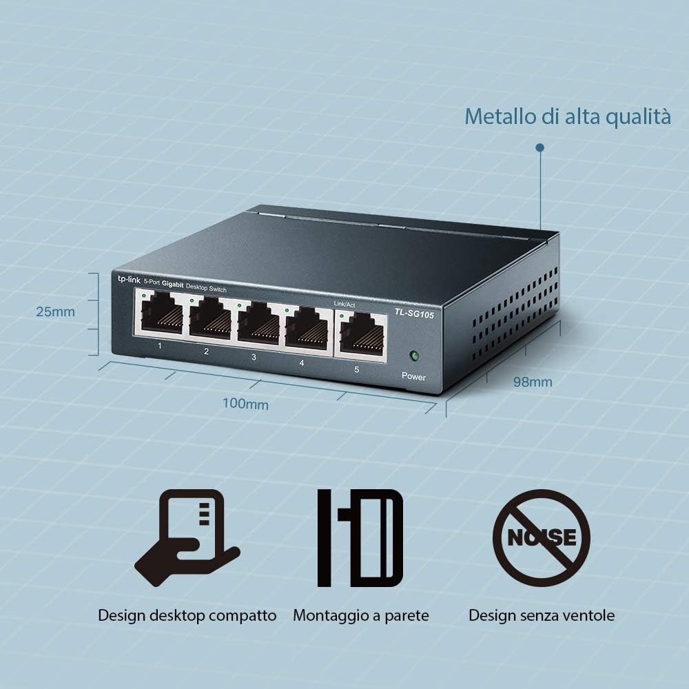 TP-Link 5 Port Gigabit Ethernet Network Switch | Ethernet Splitter | Sturdy Metal w/ Shielded Ports | Plug-and-Play | Traffic Optimization | Unmanaged (TL-SG105-605) (Renewed)