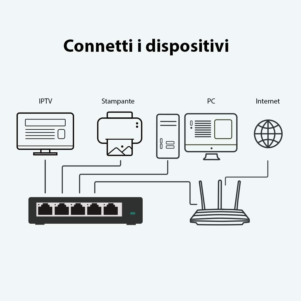 - 5 Ports GIGABIT ETHERNET - 5 10/100/1000 Mbps Gigabit auto-negotiation RJ45 ports greatly expand network capacity