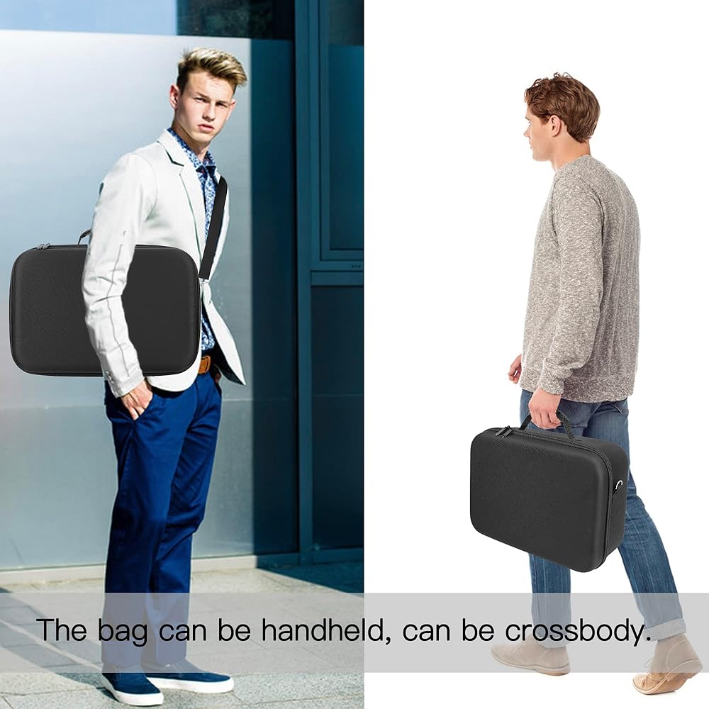 Sturdy carrying handle and removable retractable shoulder strap carry way, can greatly reduce the burden of travel. Drone storage case size: 13.4*11.4*4.5