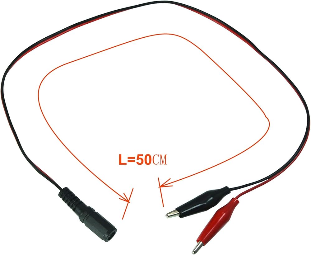2x DC 5.5x2.1mm Power Plug Male Adapter Connector to 50cm Double Crocodile Clips Test Cable