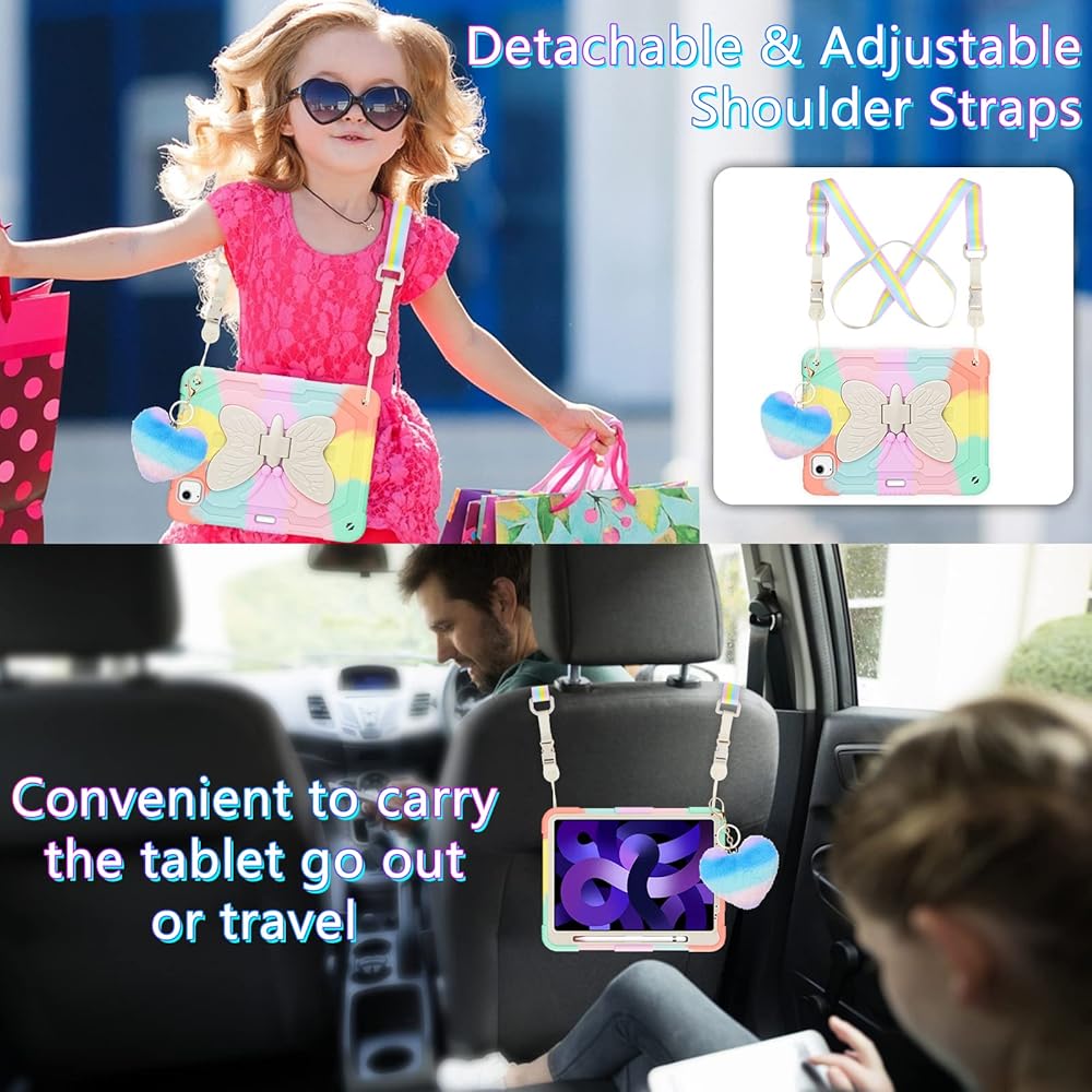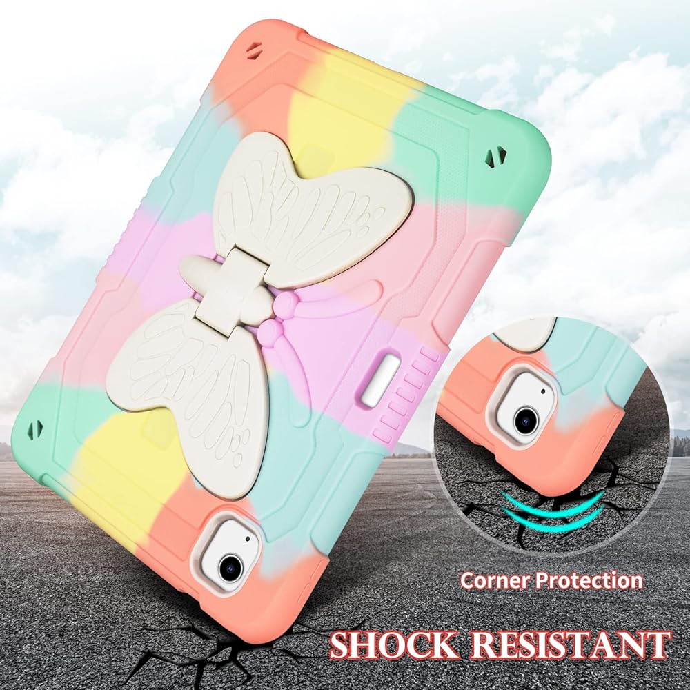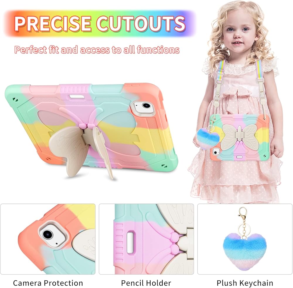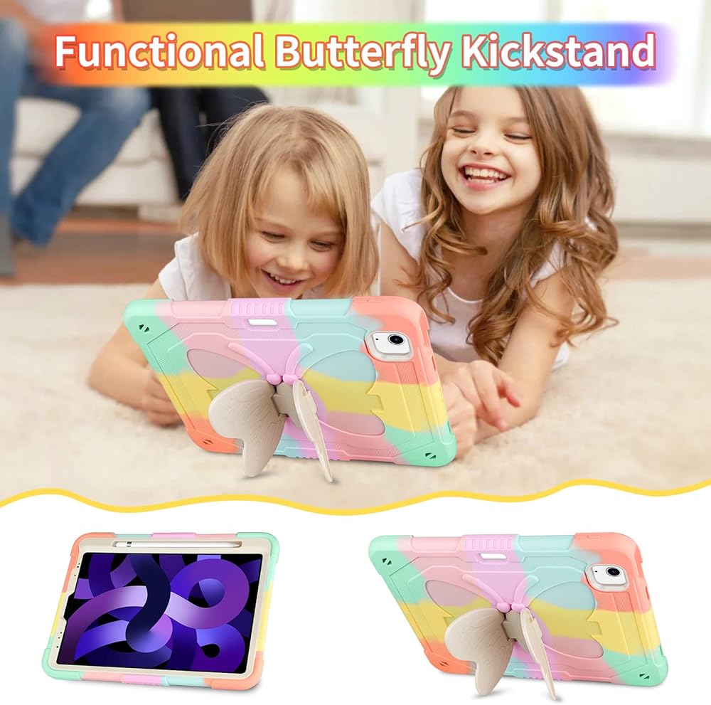 【Nice iPad Case for Children】The butterfly kickstand and cute keychain are unique and eye-catching, bringing joy to every child and making it more convenient for them to use tablets in their daily life which will be a special & practical children's holiday gift, suitable for kids girls boys or teens using. Any defective for this iPad air 5th generation case, please feel free to message us, we will offer you the suitable solution within 1 working day.
