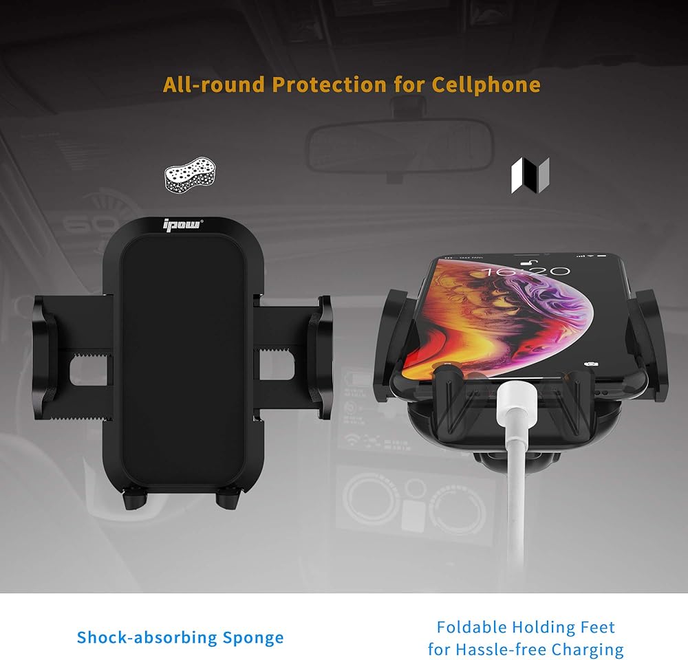 One Button Auto-Release, All-Around Phone Protection - Merely press the release button, the two side arms will open automatically. Pull out the hidden support feet and squeeze the arms to hold the phone. Along with the shock adsorbing sponge cushions, your phone will be hugged and protect carefully like a baby in the car seat.