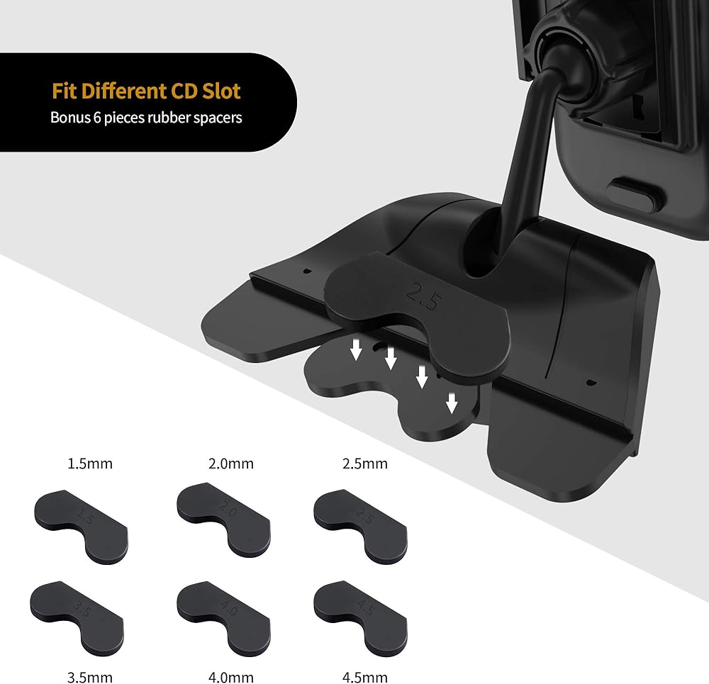 Broad CD Slot and Phone Compatibility - We prepared 6 rubber pads with different depth(1.5mm - 4.5mm) in the package for you to choose according to the requirement of your CD slot. The holder fits phones with width from 1.8" to 4.1" thickness up to 0.6".