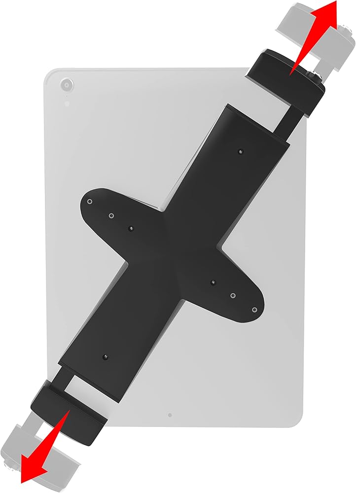 CTA Digital's Universal Security Holder offers an economical solution to those seeking a sleek, versatile, and lockable solution for home offices, work, conference rooms, gyms, and any place that needs a durable tablet mount. The holder grips diagonal corners snugly in place with rubber grips. To insert a tablet, unlock the arms with the included key, adjust to fit, then lock in place. The back features a VESA-compatible 75 and 100mm mounting holes, ready to attach to any of CTA's VESA clamp mounts, wall mounts, or even our mobile floor stands (sold separately).