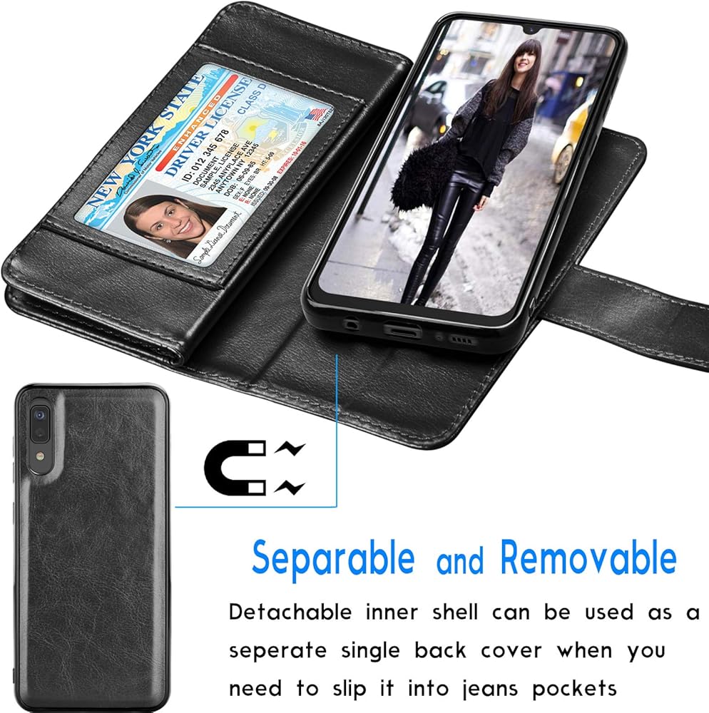 Compatible For Samsung Galaxy A30S Phone Case, provides protection against daily wear and tear, scratches, marks and scrapes.The detachable hard magnetic case allows you to carry the phone without the wallet attached at your convenience(The hard case part can attach on the refrigerator)