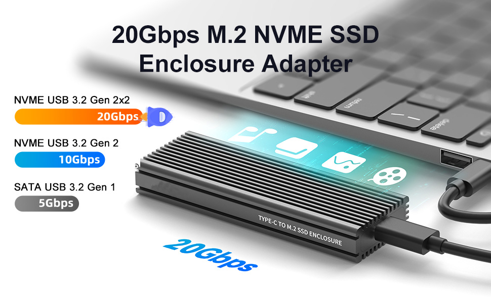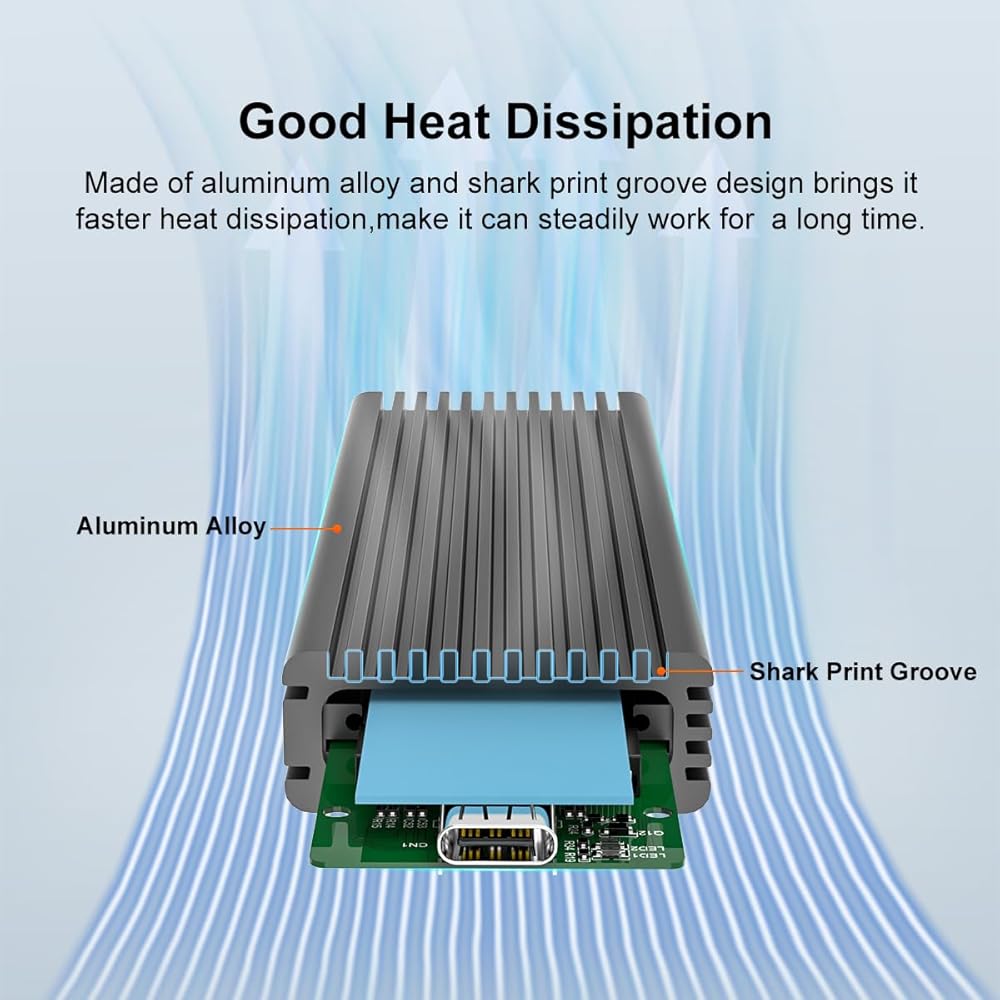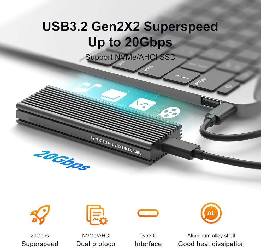Durable & Efficient Design: Crafted with a slim, durable aluminum alloy shell, this enclosure ensures not only durability but also excellent heat dissipation. The package includes a thermal pad, USB Type-C and USB 3.0 (Type-A) cables, and a screwdriver for easy setup.