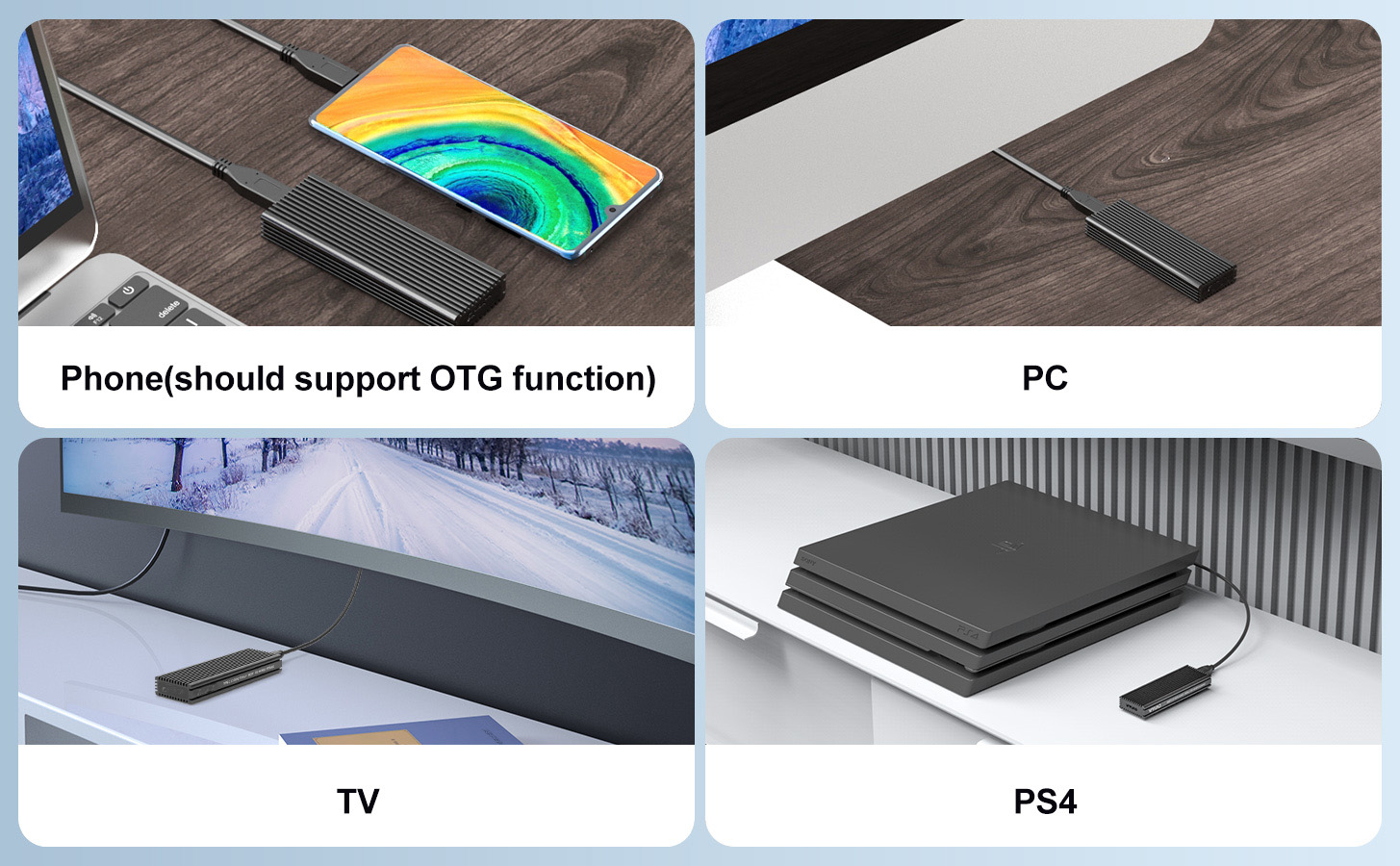Intuitive Indicator: A blue indicator provides a clear display of data transfer status. Remember to format new SSDs for accessibility, ensuring your SSD file system is supported by your host operating system.