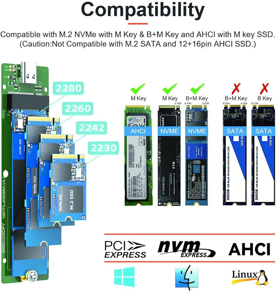 Wide Compatibility: The K1687P3 is designed for both NVMe PCIe & AHCI M.2 SSD connectors, offering broad compatibility. Please note it doesn't support M.2 SATA SSDs, PCIe devices like WiFi/capture cards, mSATA SSDs, or non-M.2 form factor SSDs.