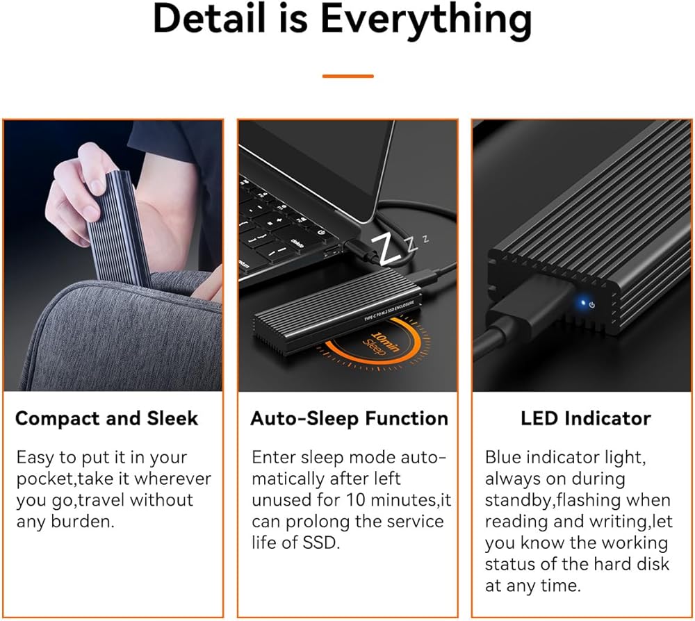 Performance-Enhancing Chipset: Featuring the high-performance RTL9210B controller IC chipset, the enclosure supports UASP and Trim protocols to boost speed and extend SSD life. It's compatible with Windows 7/8/8.1/10, Linux, and MAC OS, requires no additional drivers, and is plug-and-play ready.