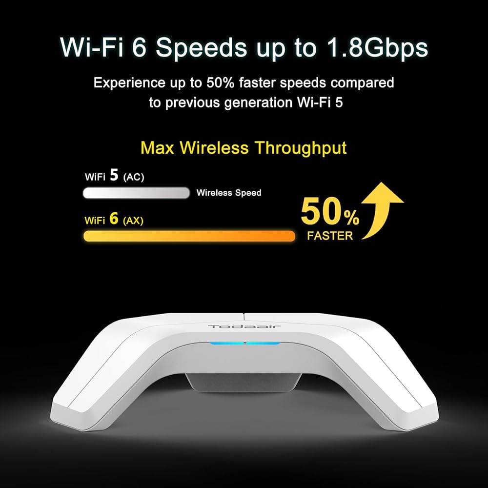 【Extensive Coverage】:It is equipped with 4DBi and 5DBi antennas with high-performance signal enhancement modules and has coverage up to 3,300 sq.ft. It can be used by 120 devices, eliminating WiFi blind spots and providing full WiFi6 coverage for medium and large families.