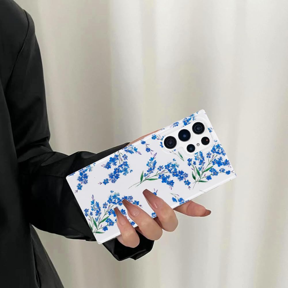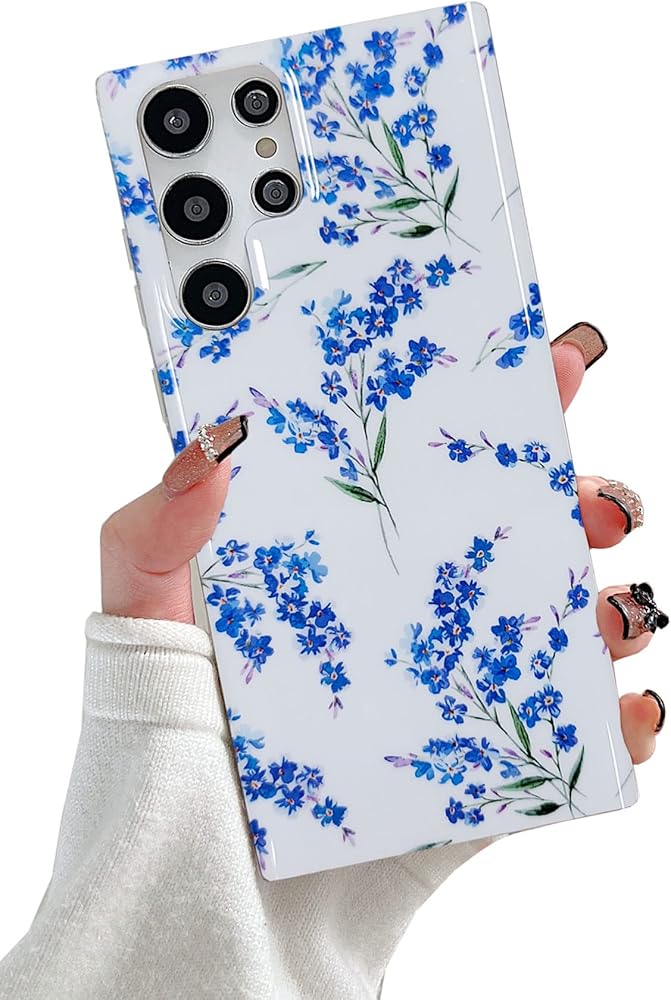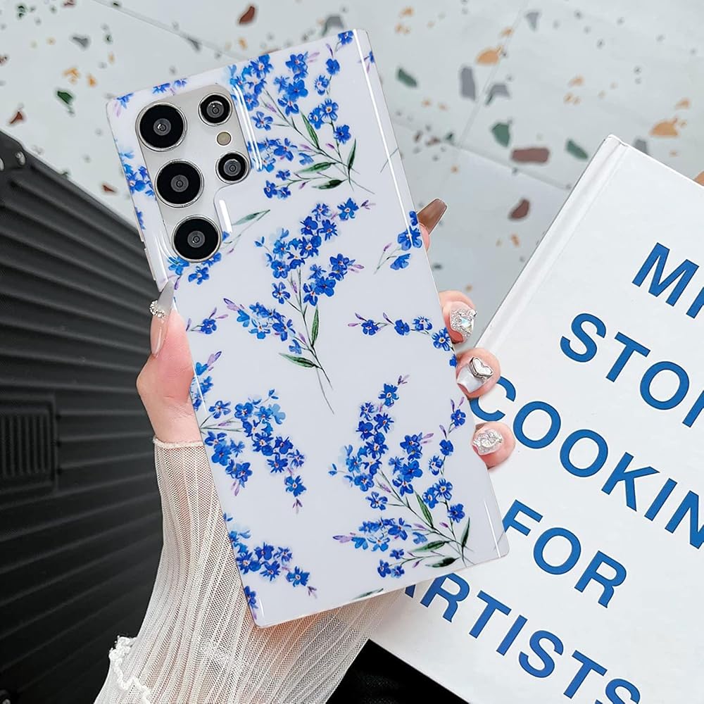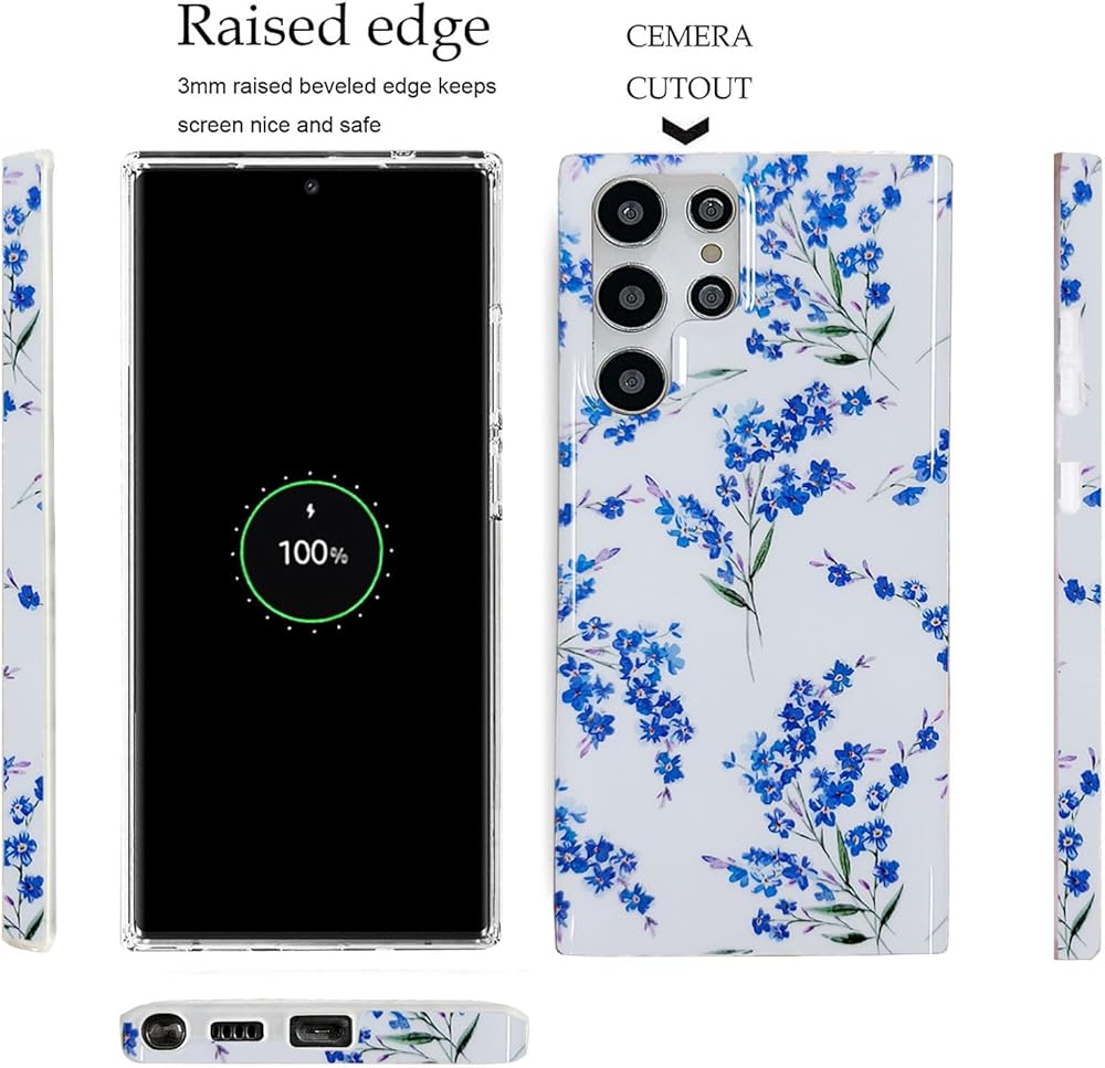J.west Floral Compatible with Galaxy S23 Ultra 5g Case 6.8", Soft TPU Design, Cute Flower Pattern Shockproof Bumper Phone Case Cover for Women & Girls - Blue