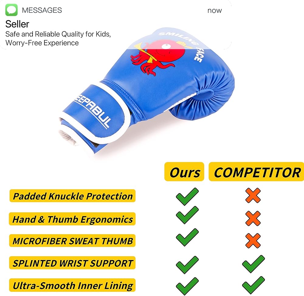 🙉 PROFESSIONAL MANUFACTURER: Est. in 2006. Produces millions of kid boxing gloves to provide the best protection for all ages & weights. Your kid's best friend for growing up! Free experience no worry.