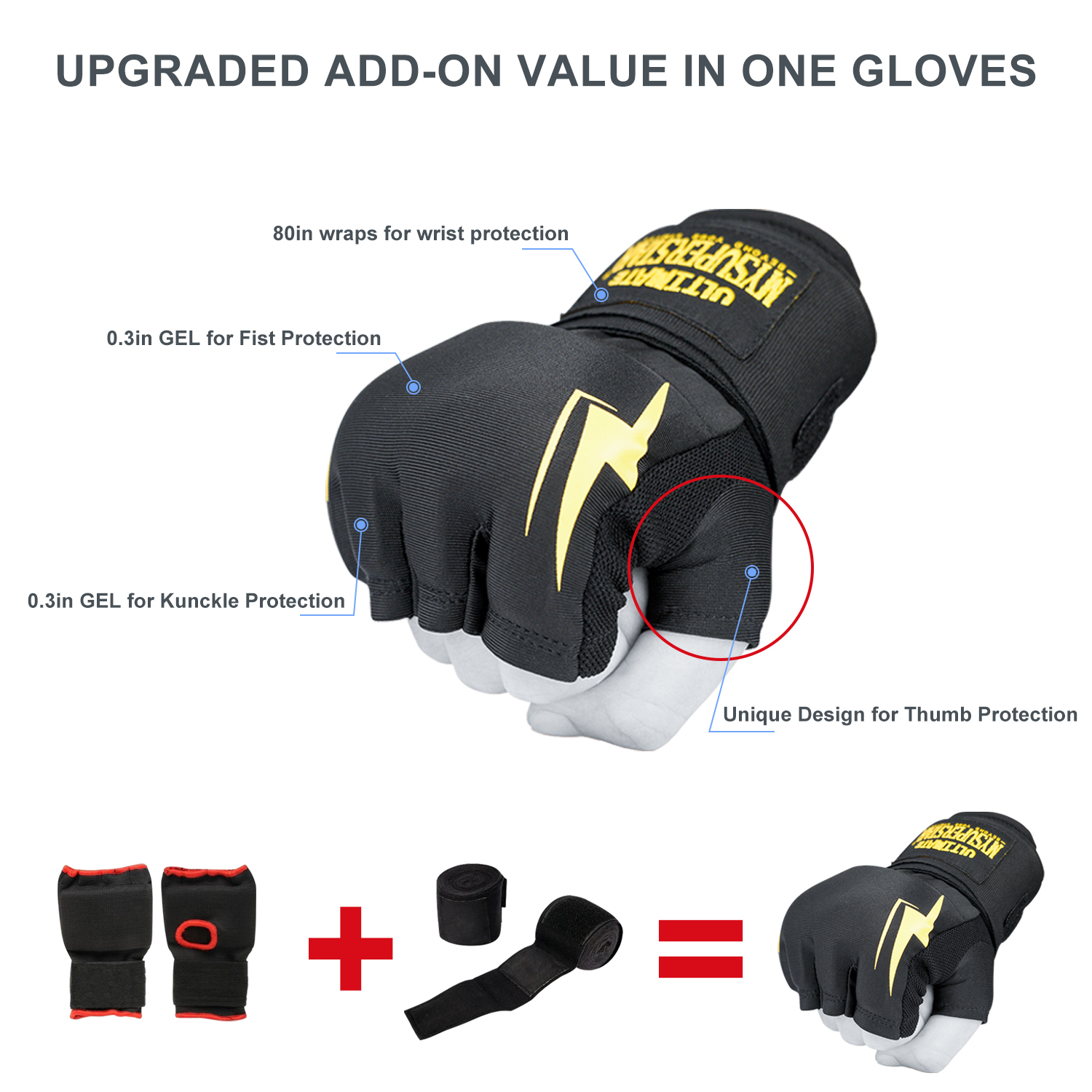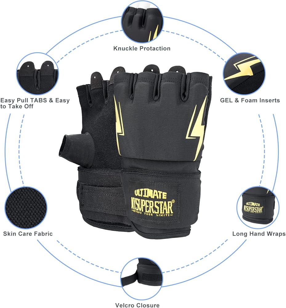 ✨ Easy On and Off: Put it on your hands that just as a glove are easy, and insert your hands to boxing gloves are also easy, Great Pair with our Ultimate Boxing Gloves;