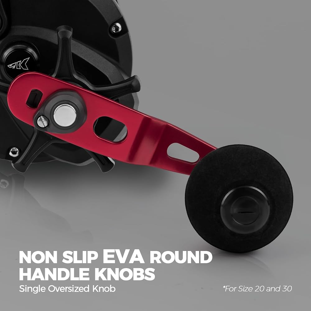 TWO HANDLE OPTIONS – KastKing designed the handles to be different on the two models for a reason. The size 10 ReKon is mostly for Kokanee, Walleye and Trout so KastKing included a comfortable, double paddle handle with EVA grips. The larger size 20 and 30 reel has a single Power Handle with a comfortable round knob that gives more leverage for larger fish and longer retrieves for Salmon, Steelhead, Lake Trout, Striped Bass, or other uses such as a catfish reel that require more fishing line.