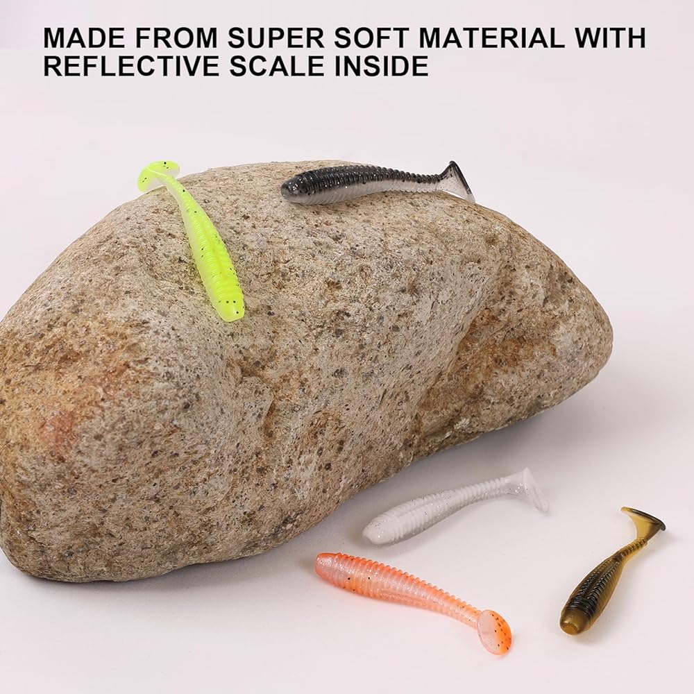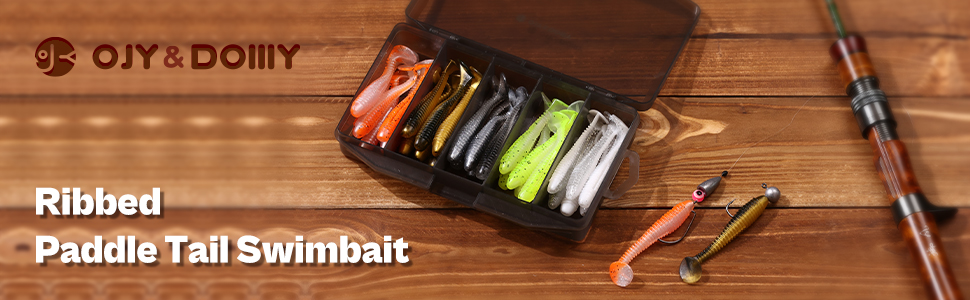 OJY&DOIIIY paddle tail swimbait fishing lures kit contains 40 PCs ribbed paddle tail swim baits with tackle box included.