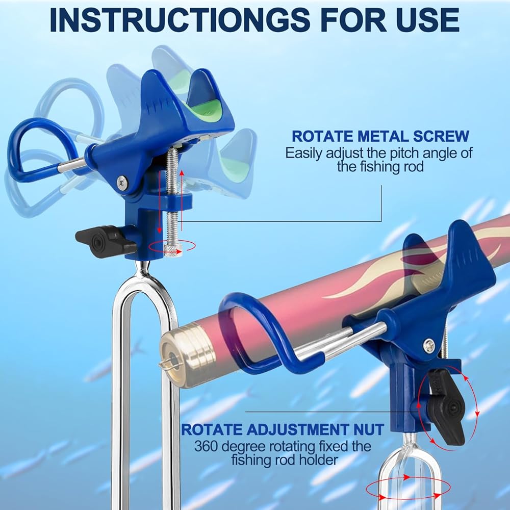 🎣【360° OMNI-DIRECTIONAL】 The head of the fishing rod stand allows 360-degree rotation on the horizontal axis and 130-degree rotation on the vertical axis. A set screw that's easy to turn by hand locks it into position and not easy to loosen. The ground fishing pole holder can adjust any different angle that needed when fishing by the sea, river or lake.