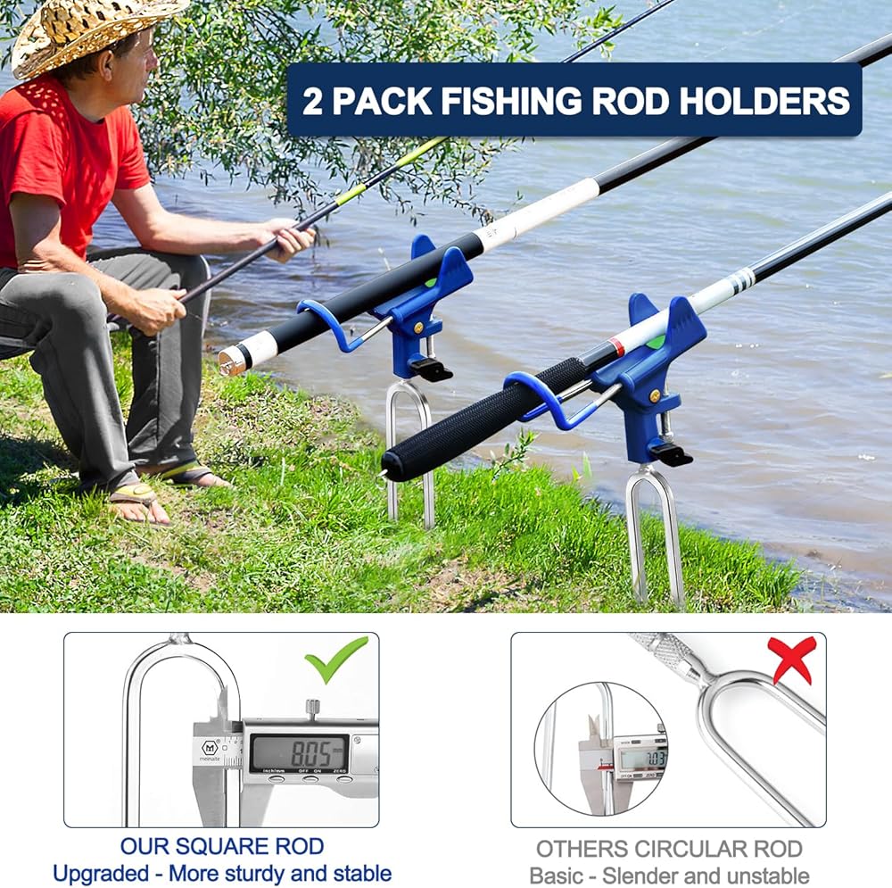 🎣【HUMANIZED DETAIL DESIGN】 Suitable for most fishing rods diameter. Fishing rod stake have a U-shape rubber provided on the rear end, with a Non-slip cushion in the front. Prevent your fishing rod from slip away and protect your rod to avoid scratching. Great for Bank Fishing, Lakes, Ponds, River and Streams.